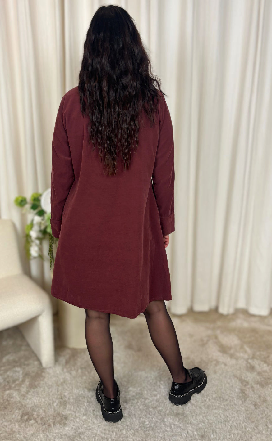 Mini kjole fra Marta Du Chateau i en bordeaux rød fløjs kvalitet.