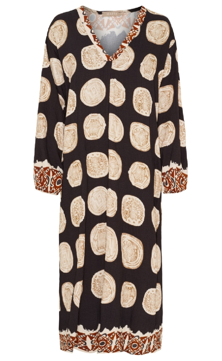 Fin kjole i sort og beige, kjolen er i et let matriale.