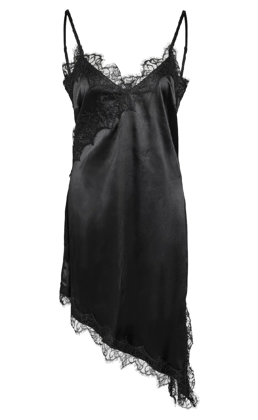 Kjolen har tynde spaghetti stropper og en dyb udskæring.