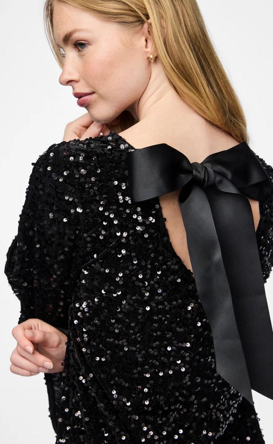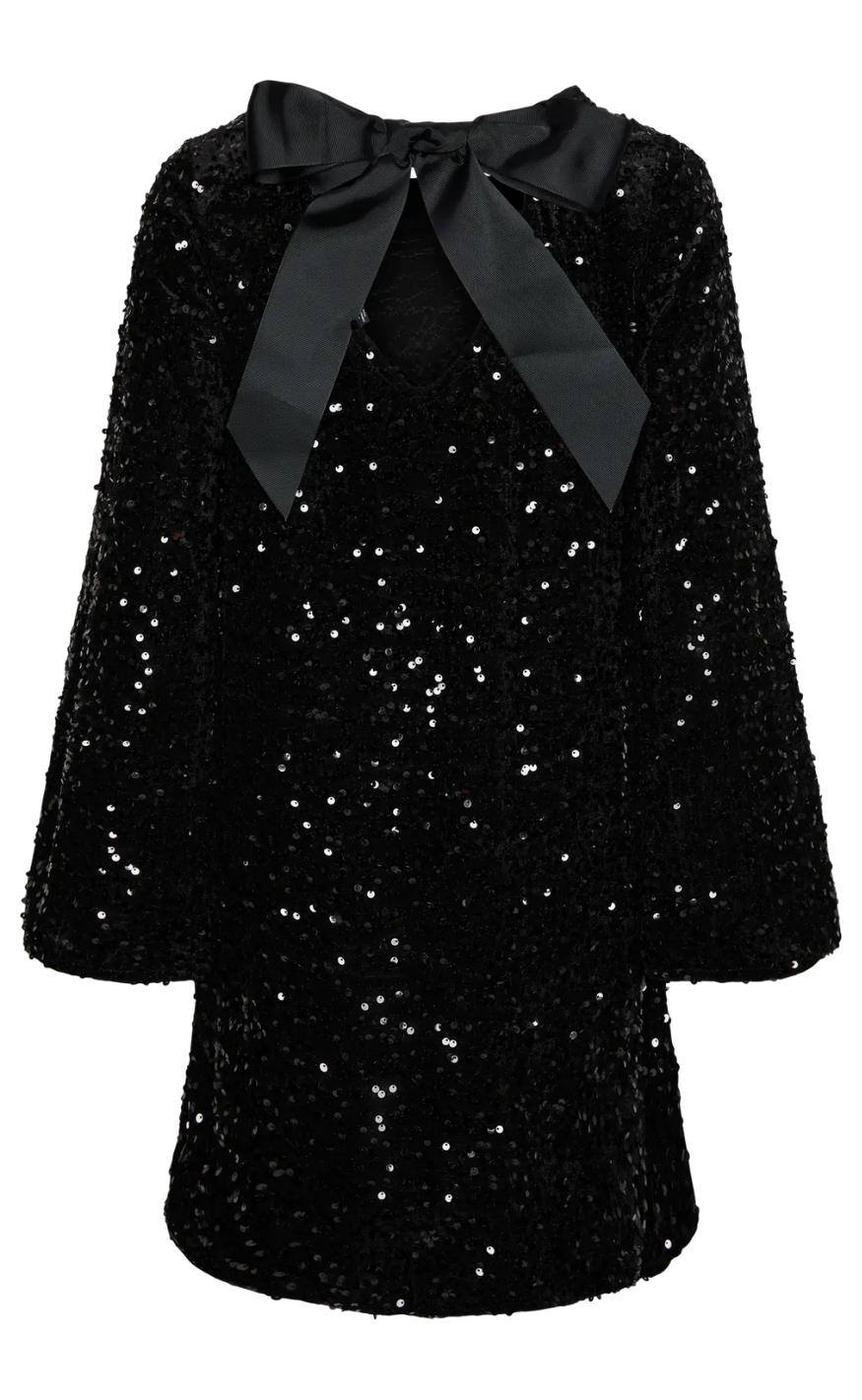 Kjolen går til omkring knæet, og har den smukkeste sløjfe på rygge.