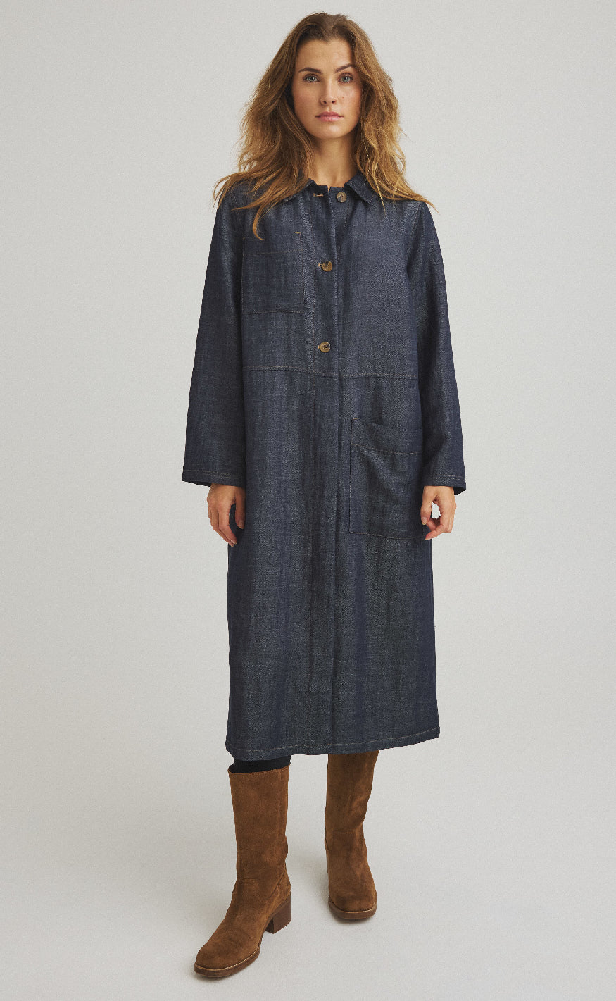 Lang denimkjole fra Luxzuz i en mørk vask med et afslappet og stilrent design.