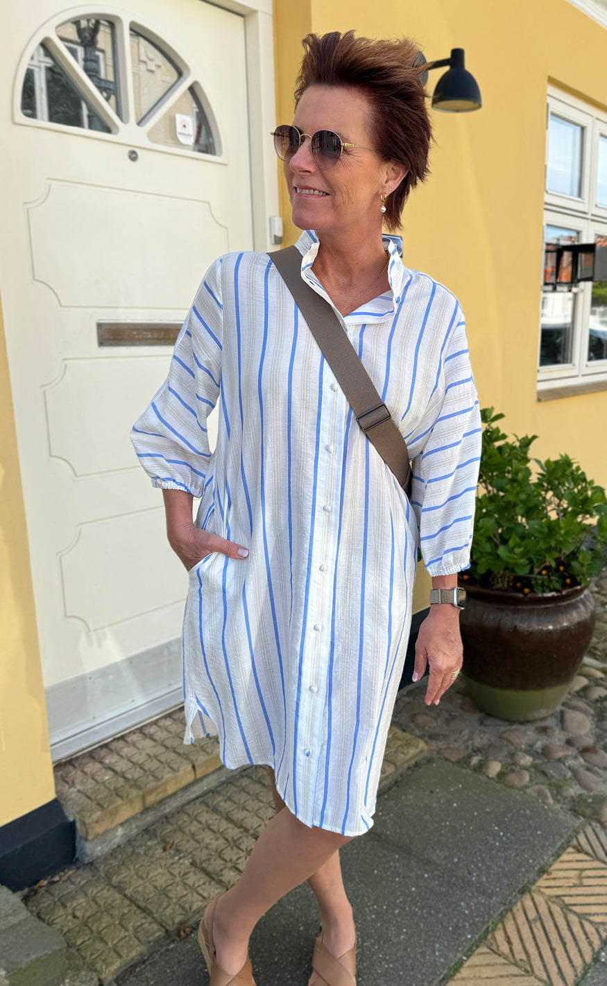 Den yndigste kjole fra INA Copenhagen i et blå og hvid stribet print.
