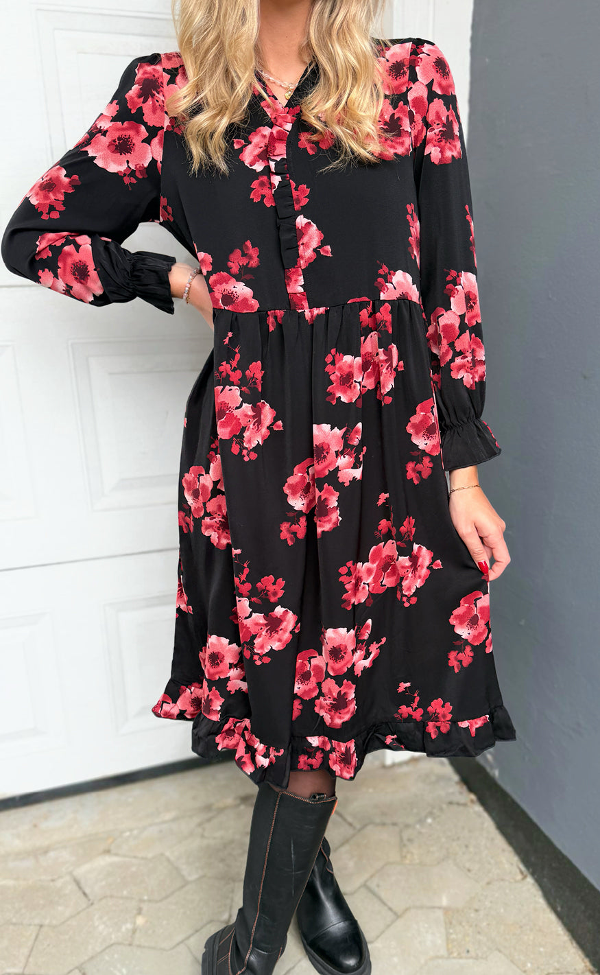 Say INA Copenhagen Kjole - Catja - Black W. Red Flowers