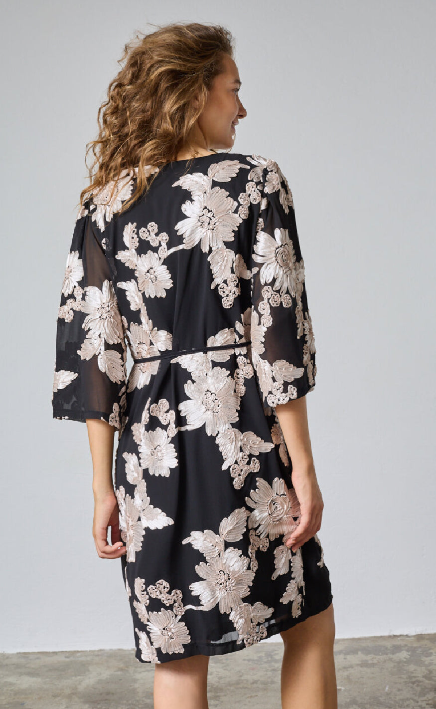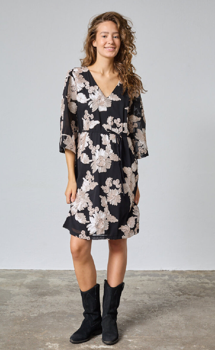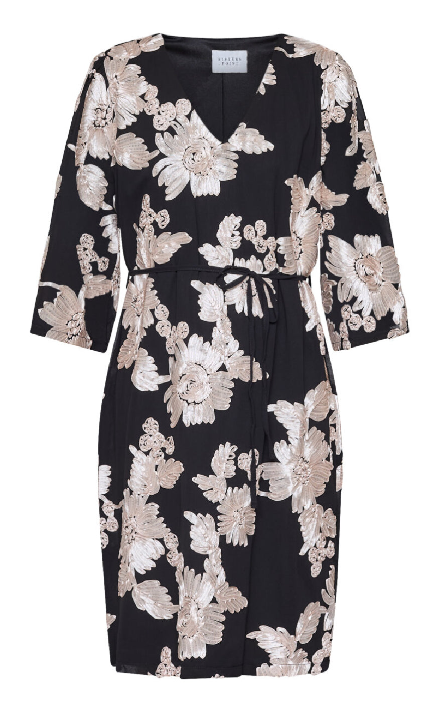 Kjolen har har en v-hals og 3/4 lange ærmer.