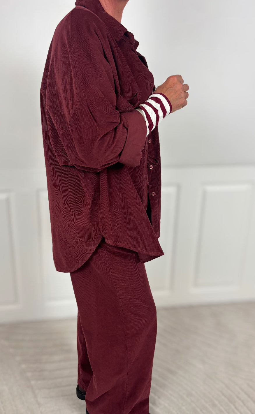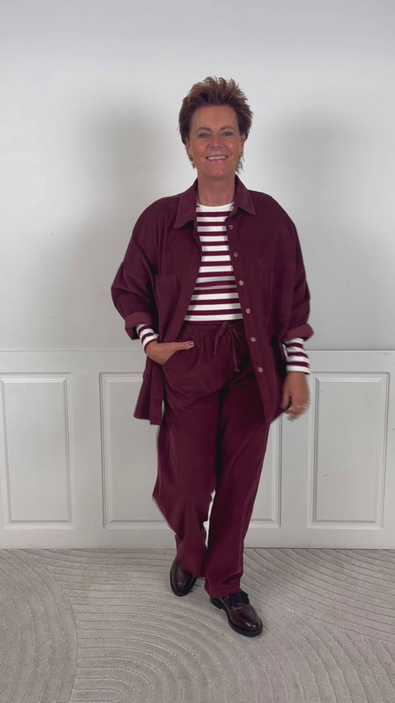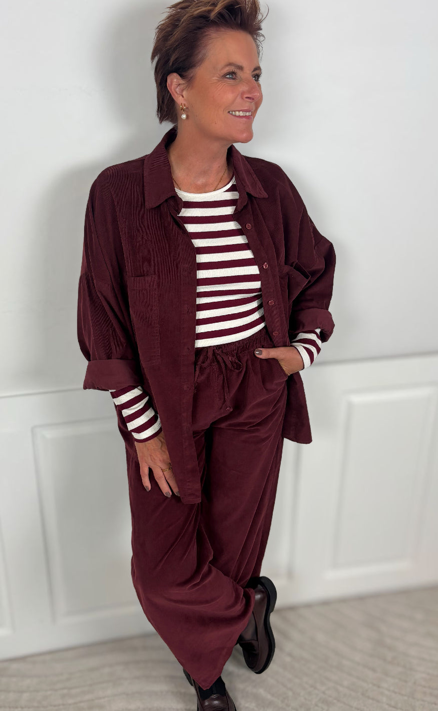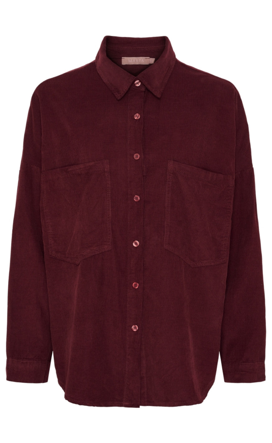 Fin skjorte fra Marta Du Chateau i bordeaux rød, i en fløjs kvalitet.