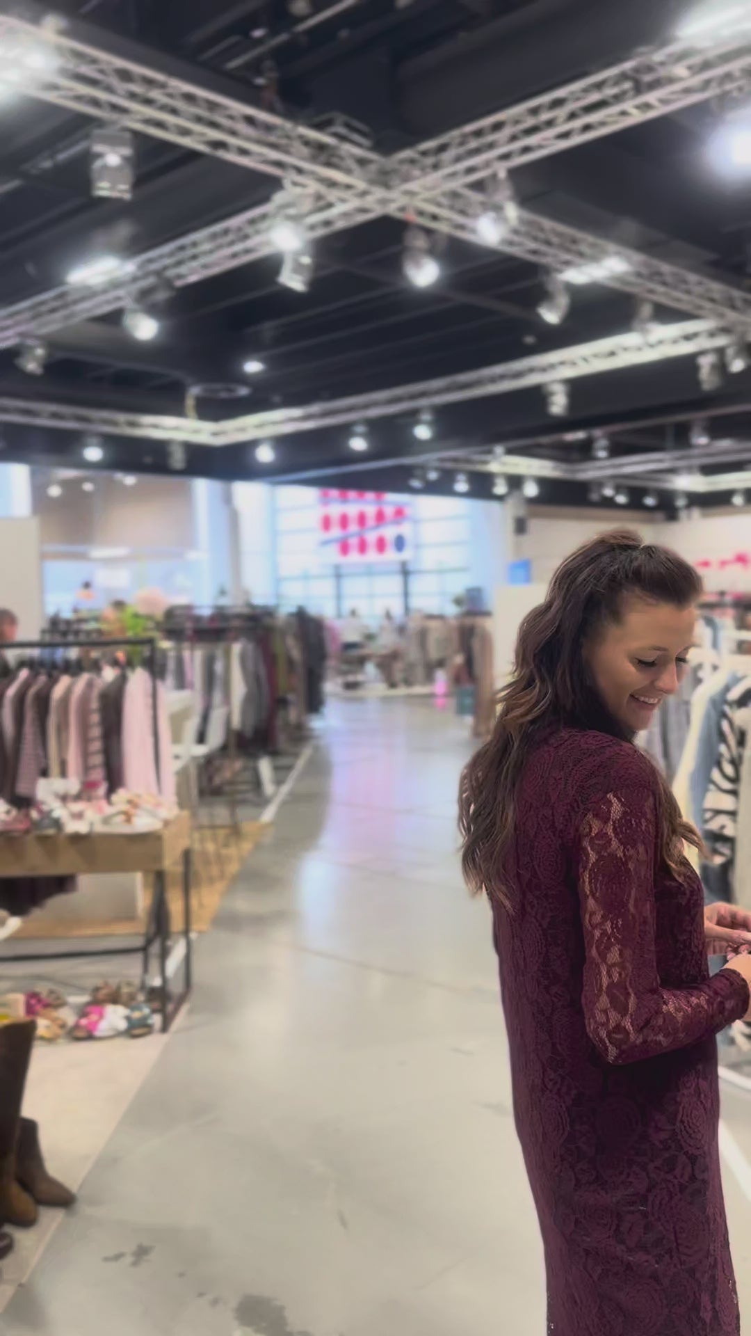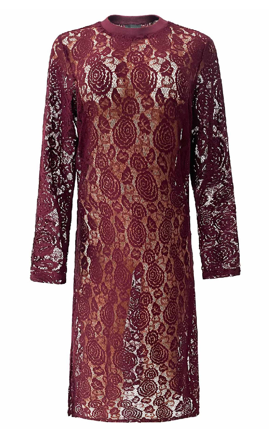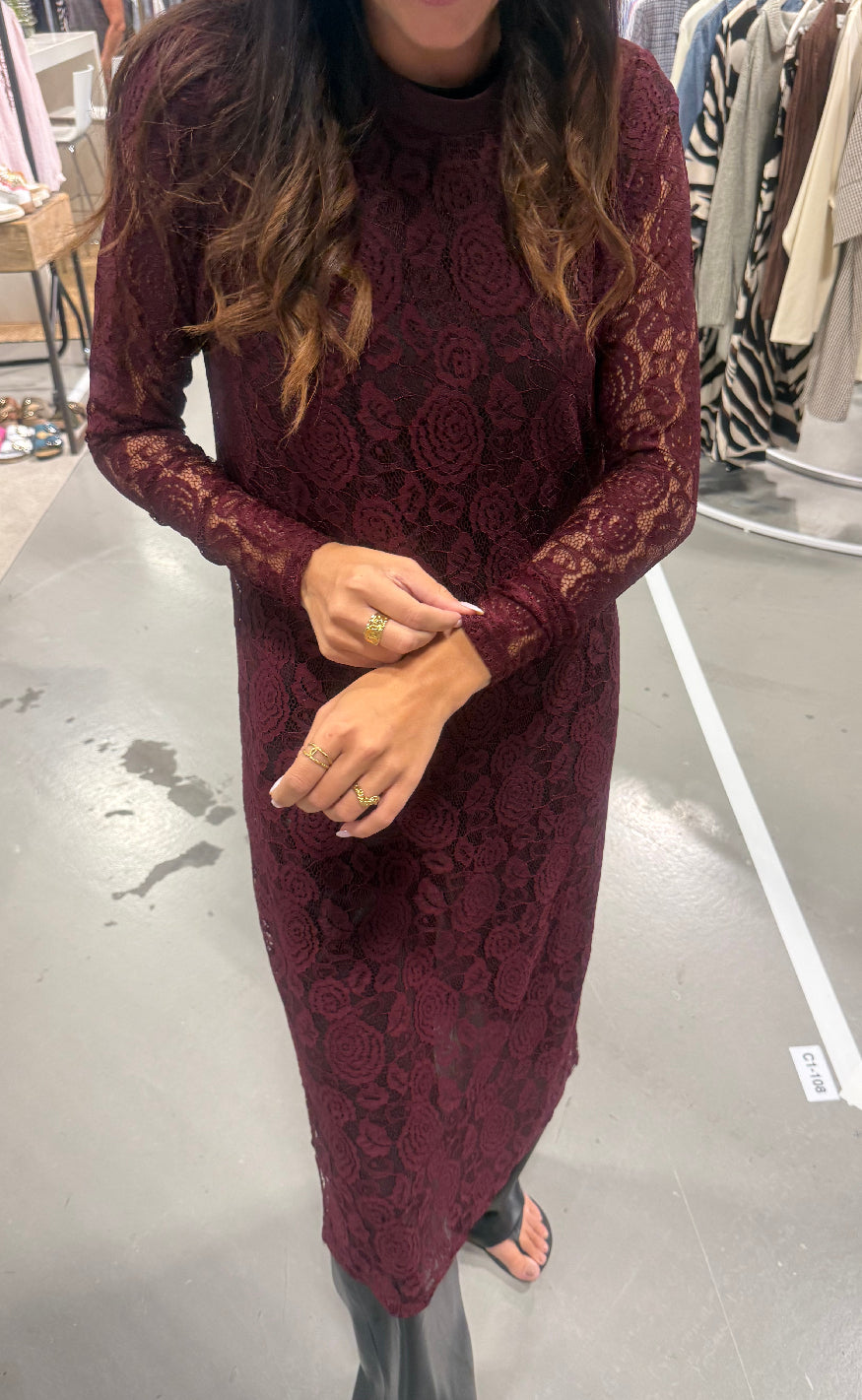 Bordeaux blondekjole fra Liberté med lange ærmer og rund hals – ideel til lag-på-lag styling og et elegant look.