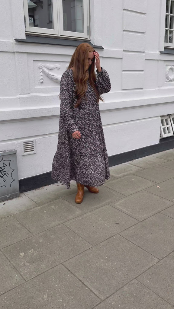 Maxi kjole fra Lollys Laundry i et blomstret print.