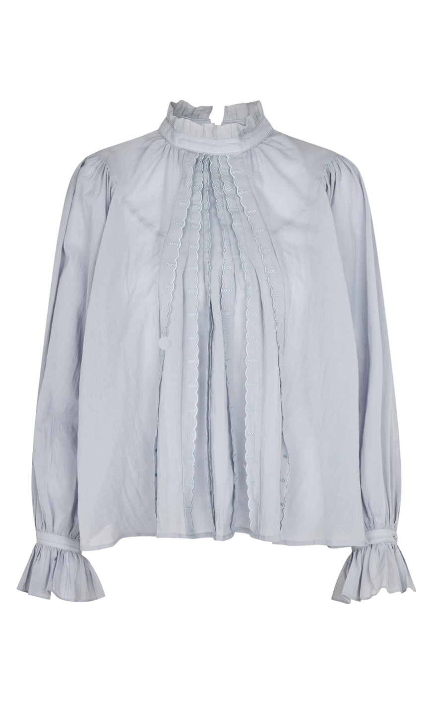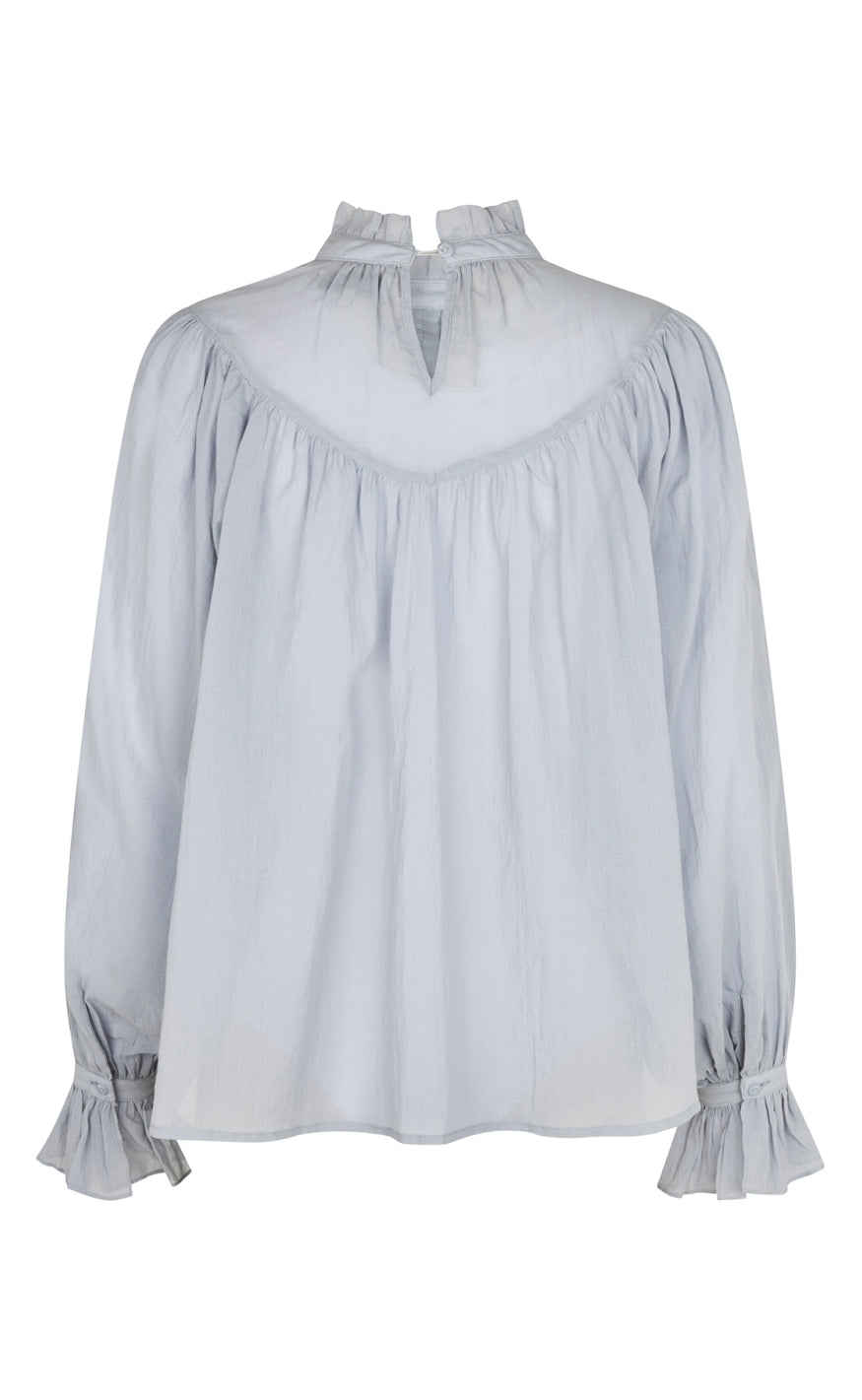 Romantisk og feminin bluse fra Lollys Laundry i en sart lyseblå nuance.