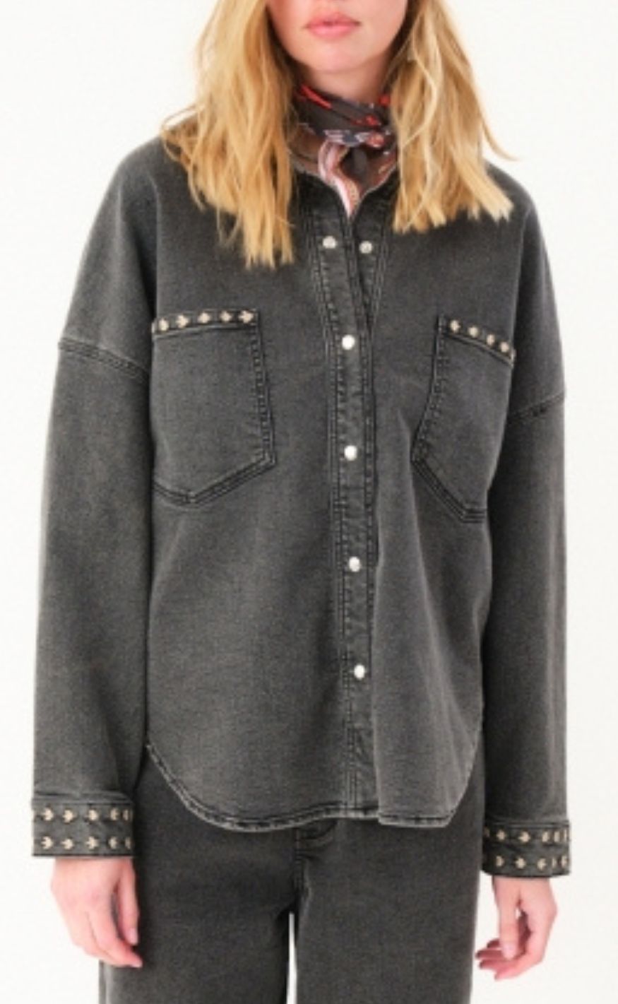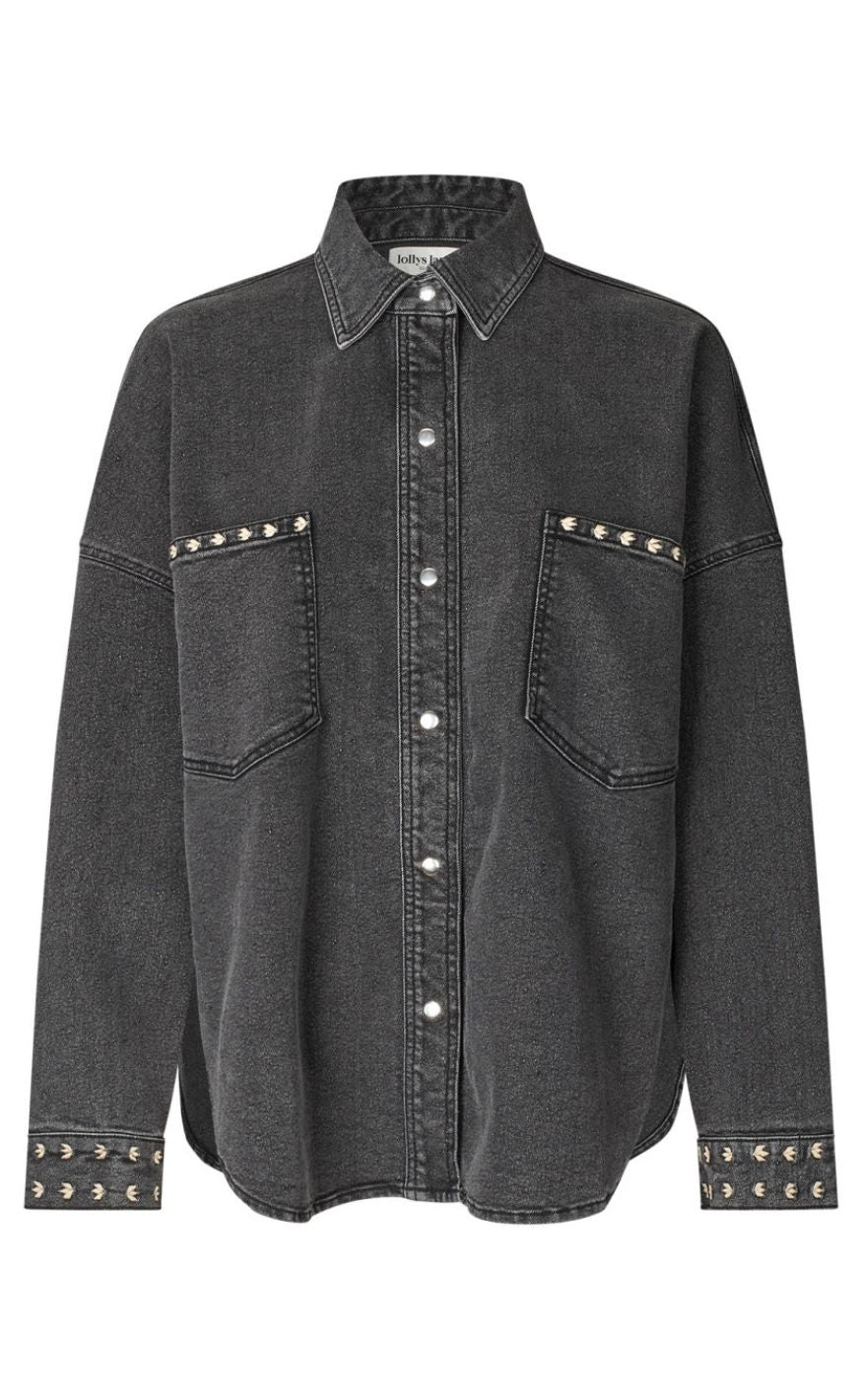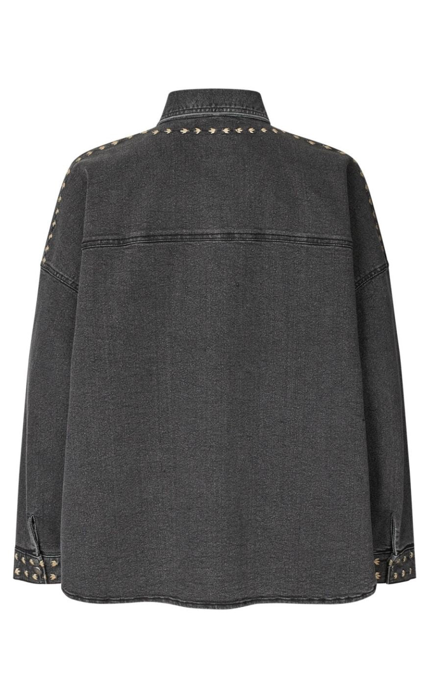 Cool oversized skjorte i sort denim. Skjorten har metalknaplukning og store brystlommer.