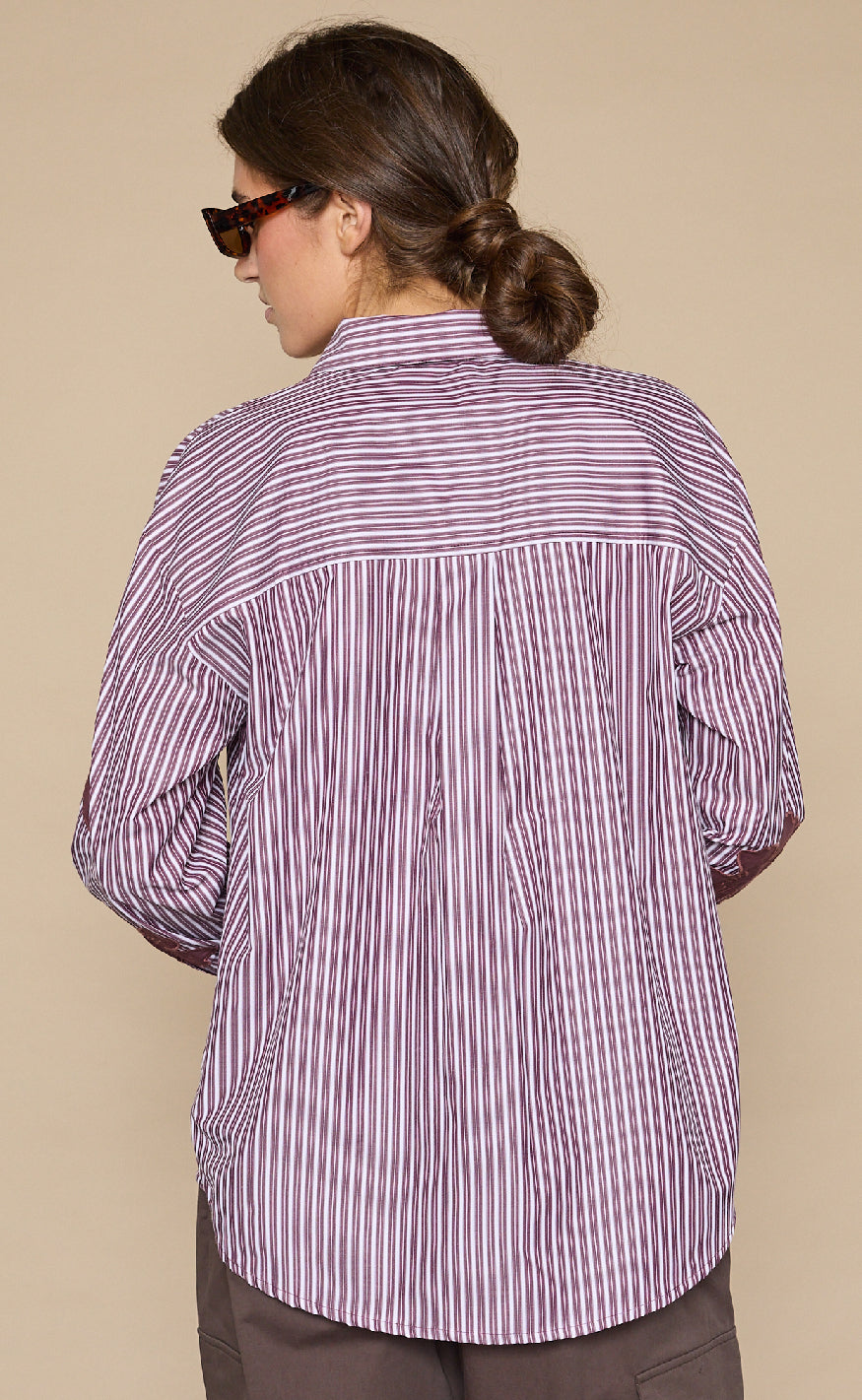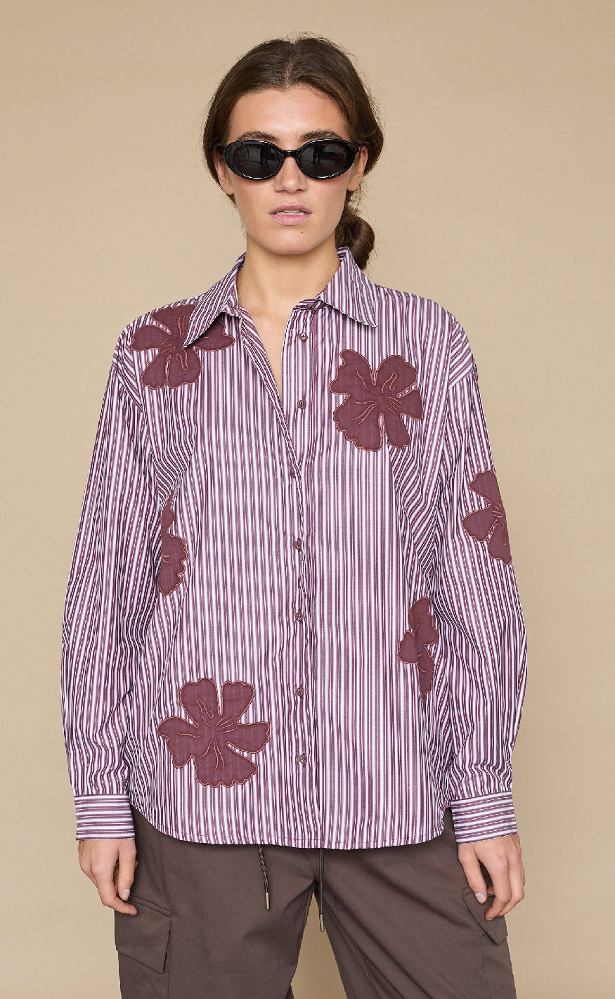 Lækker skjorte fra Love & Divine i et bordeaux rød stribet print med blomster motiver.