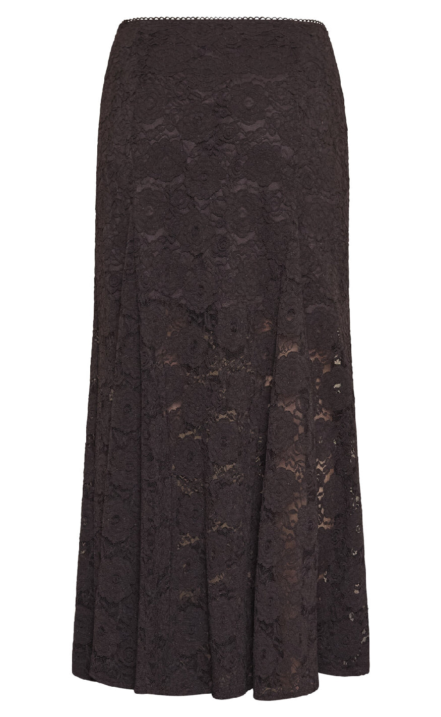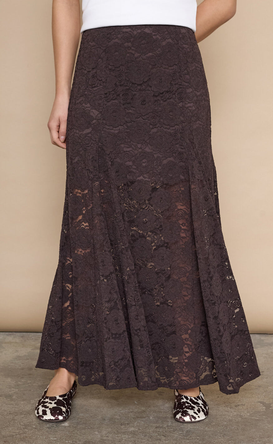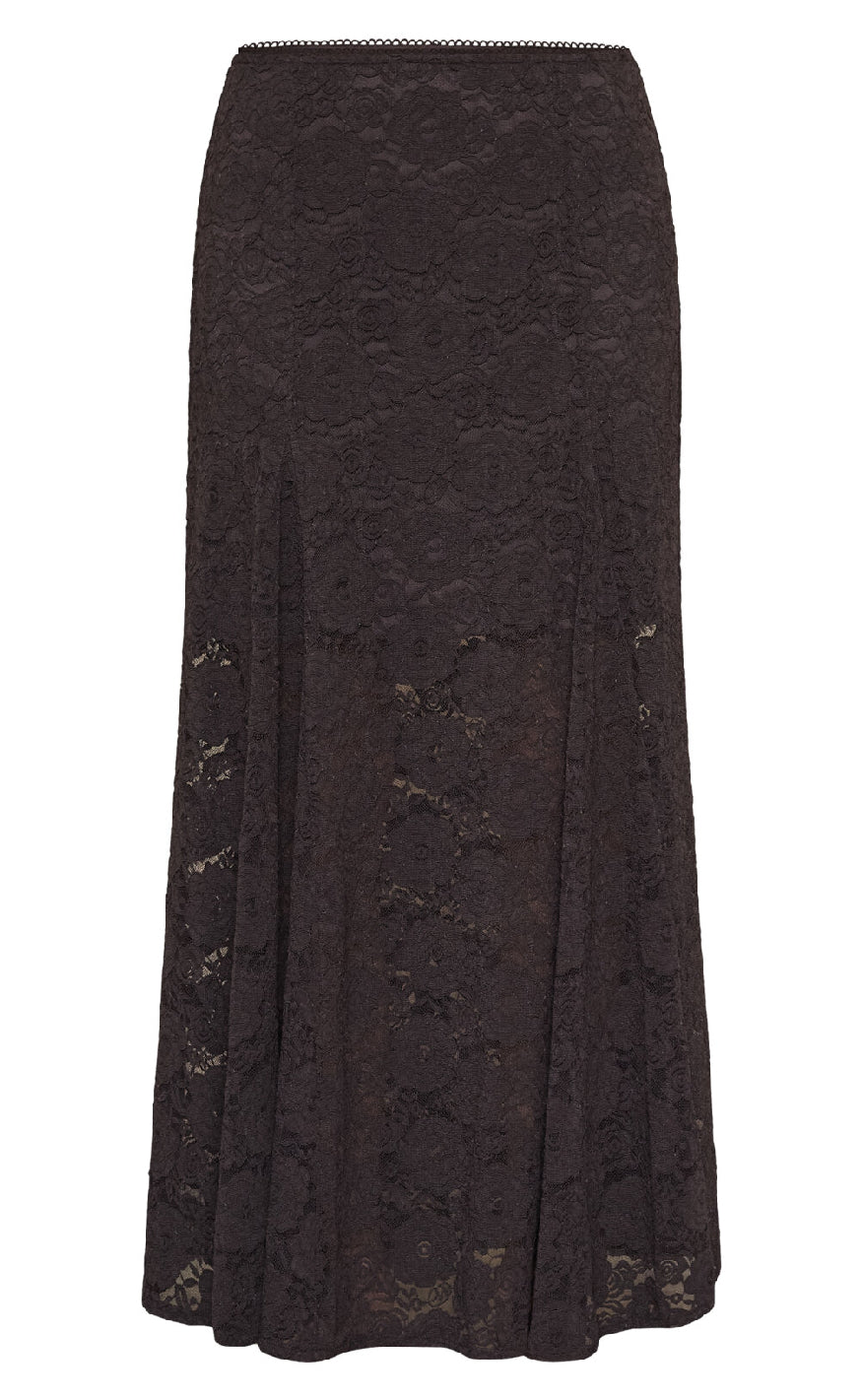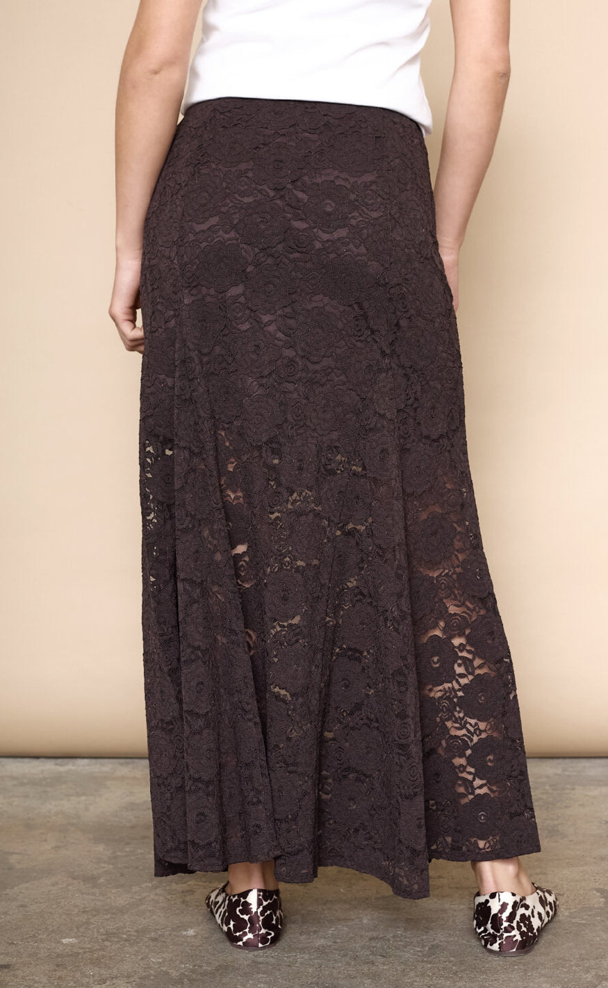 Maxi nederdel fra Love & Divine i et mørkebrunt blondeprint.