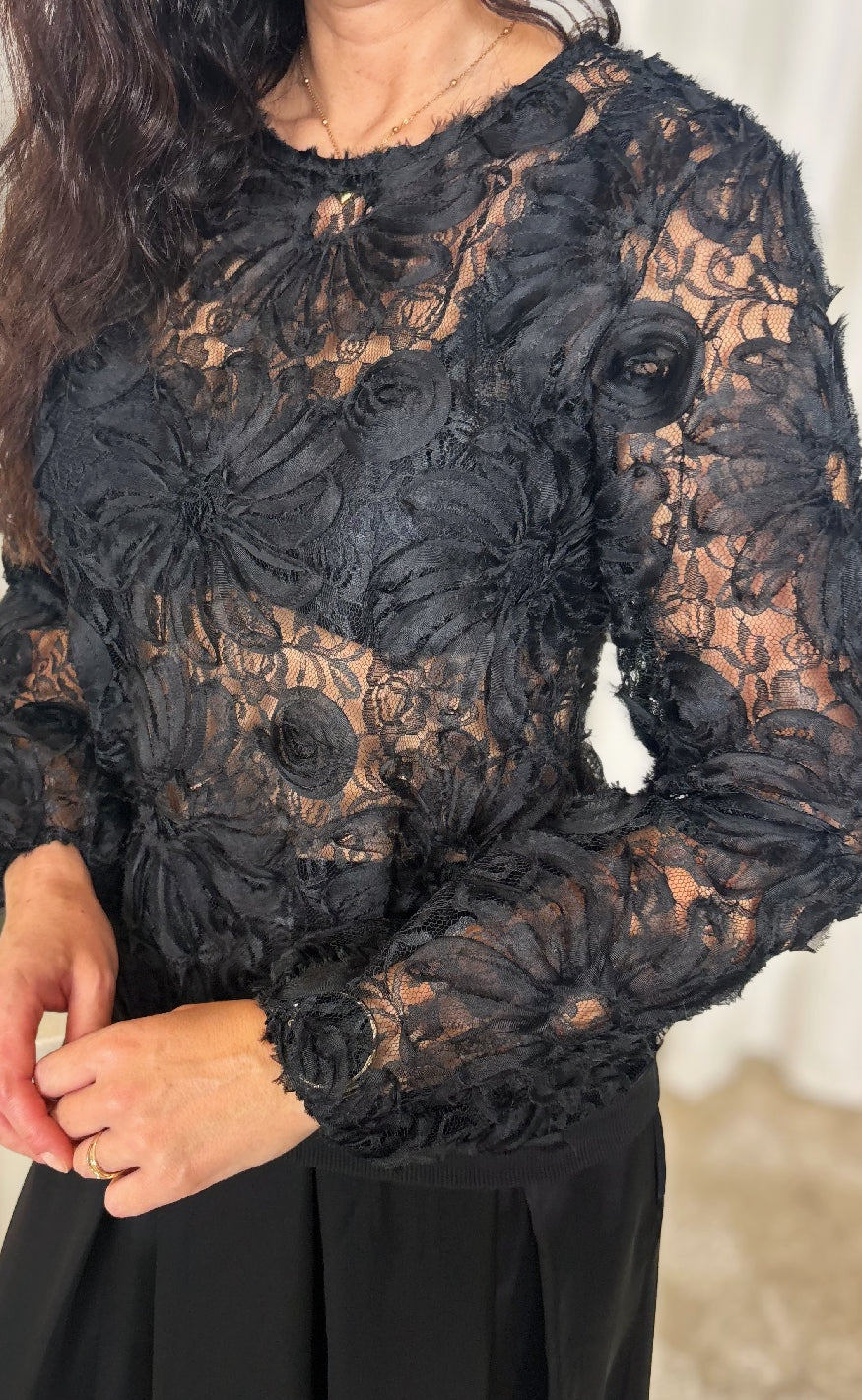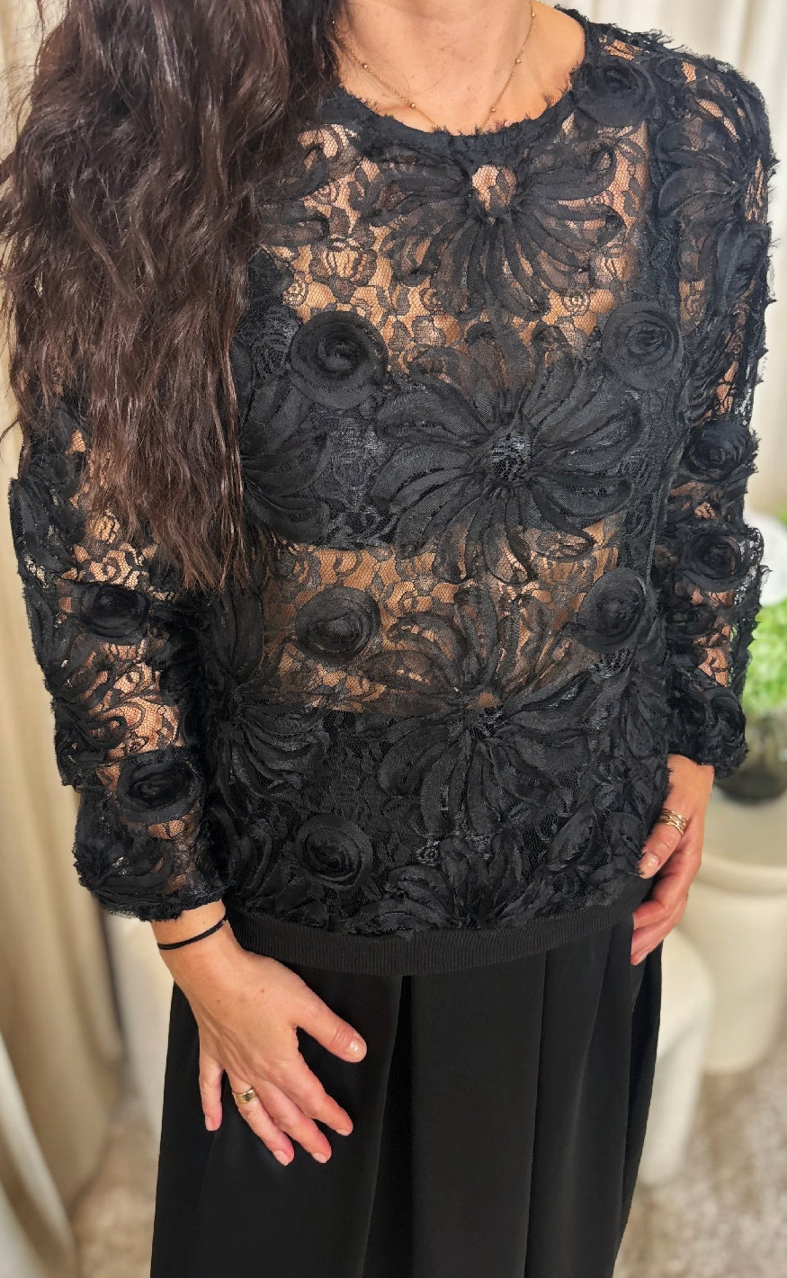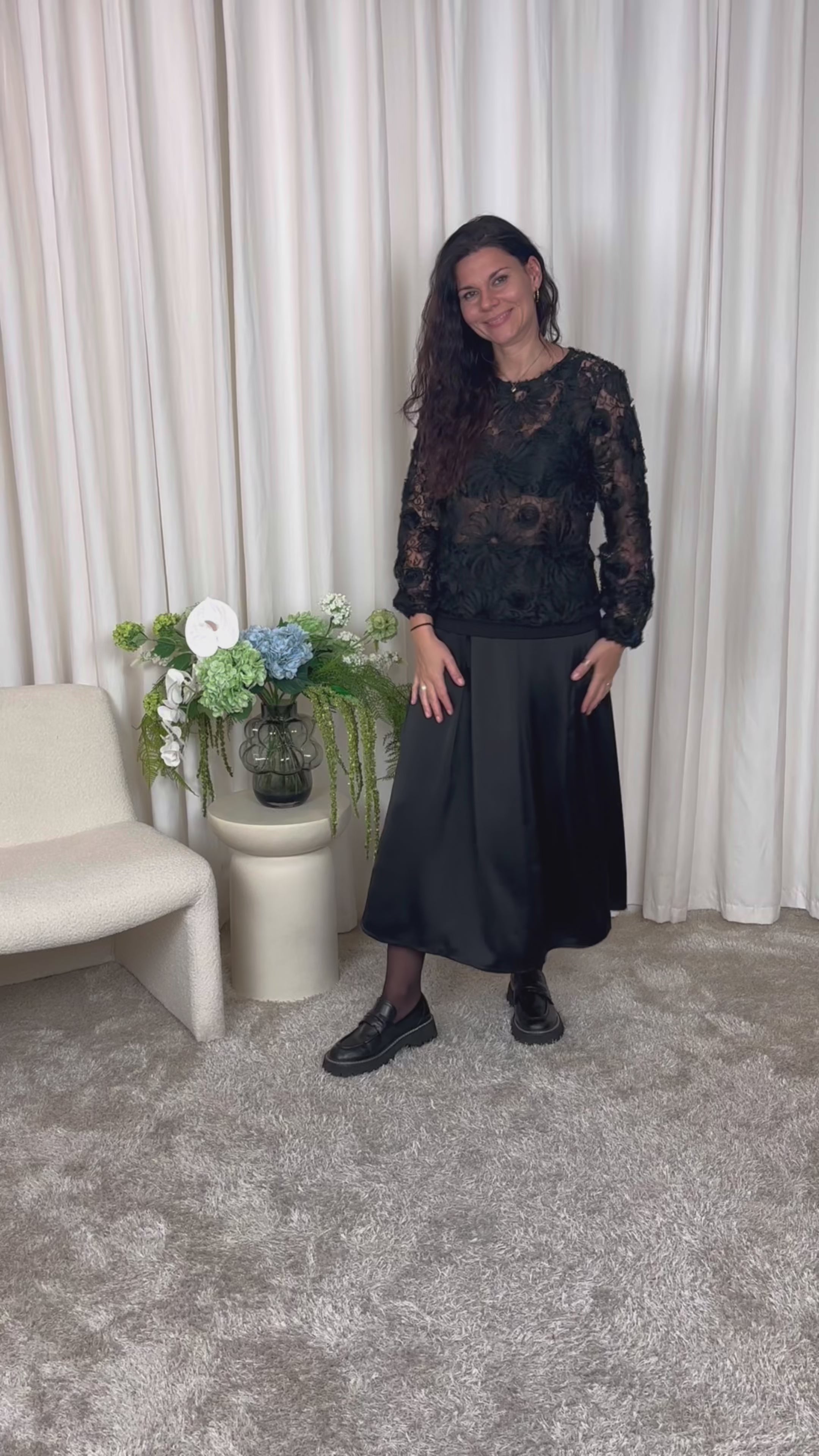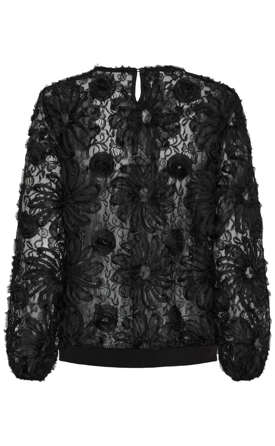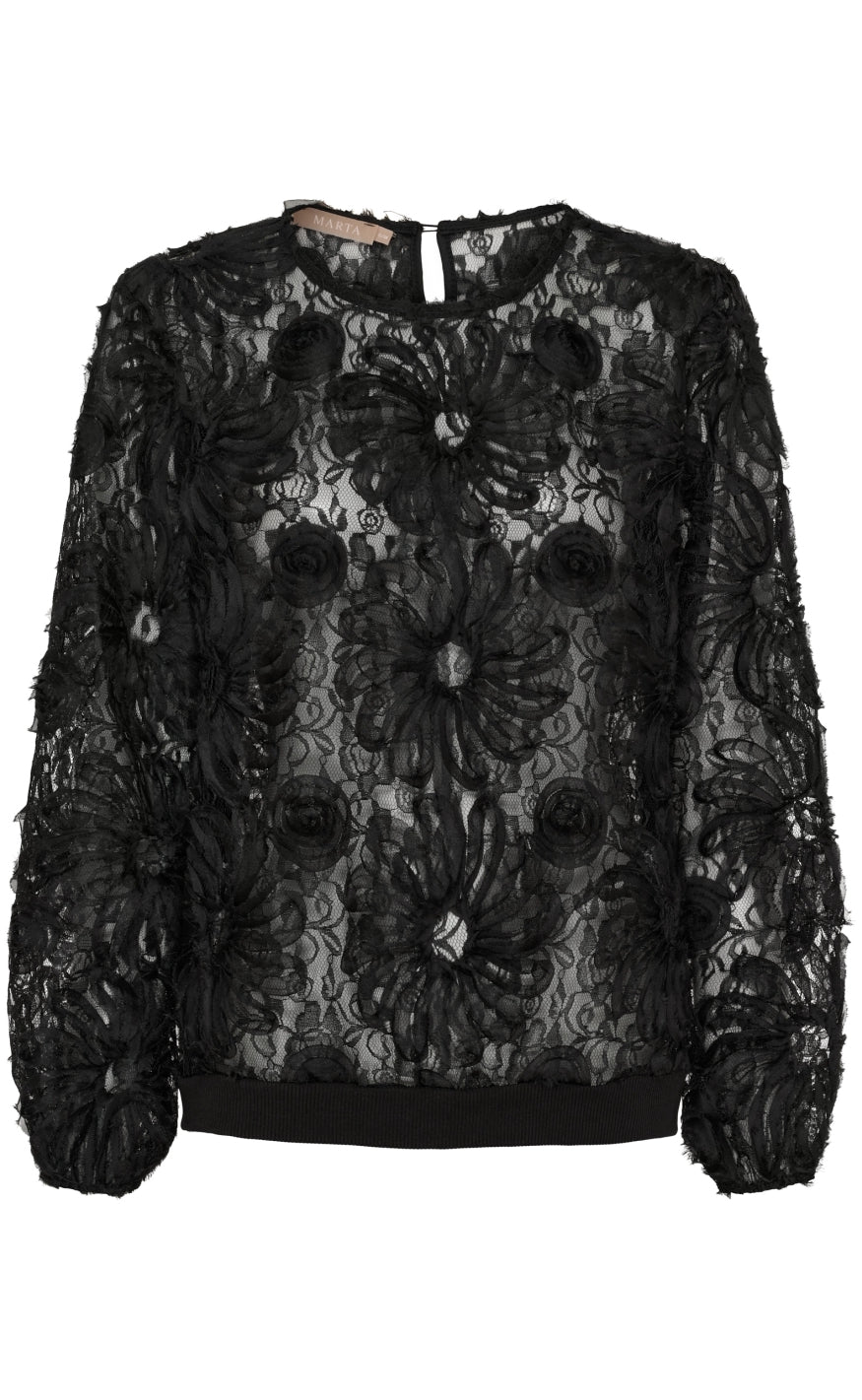 Fin bluse fra Marta Du Chateau i sort, i et flot blomster mønster.