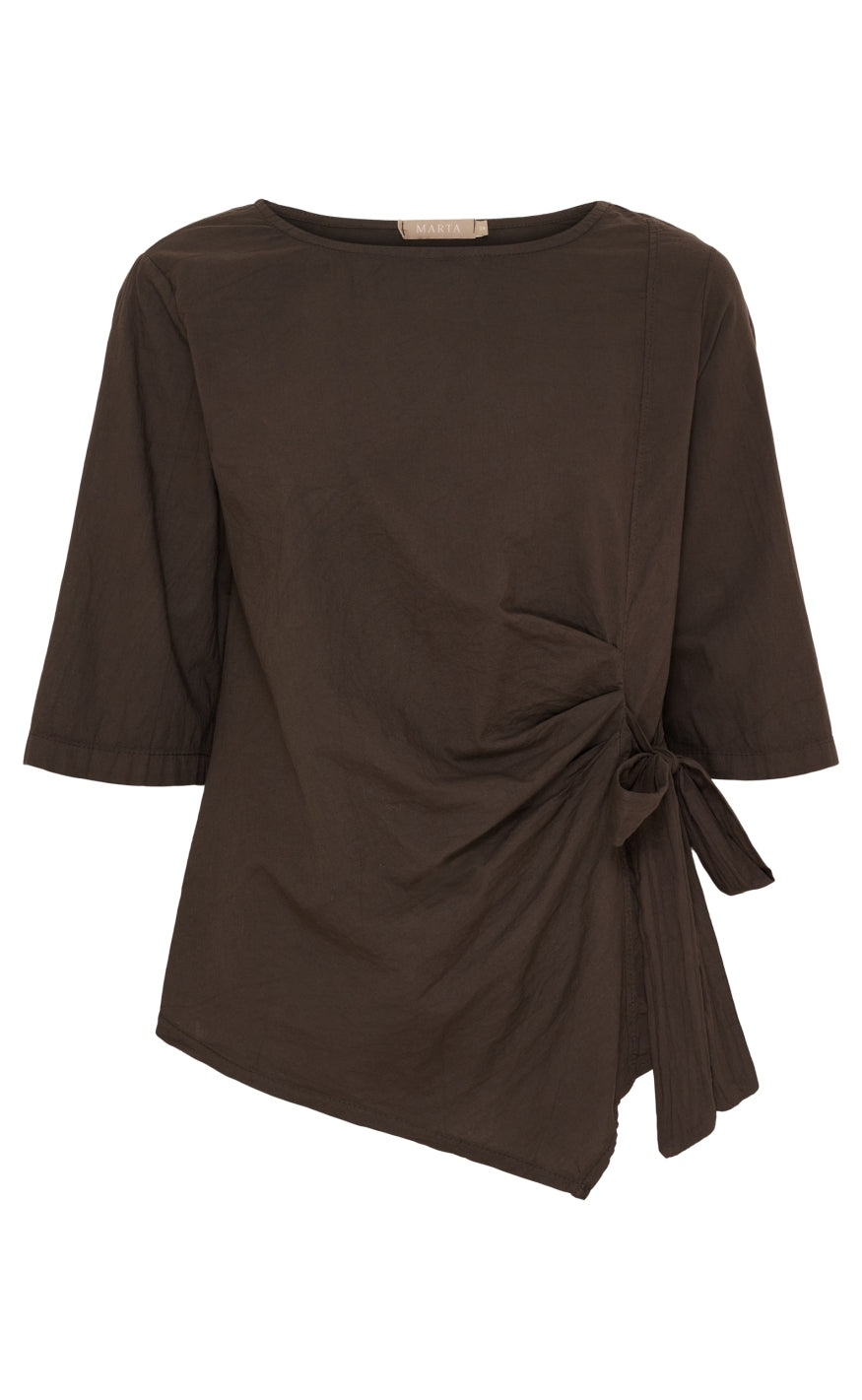 Fin wrap bluse fra Marta Du Chateau i en brun nuance.