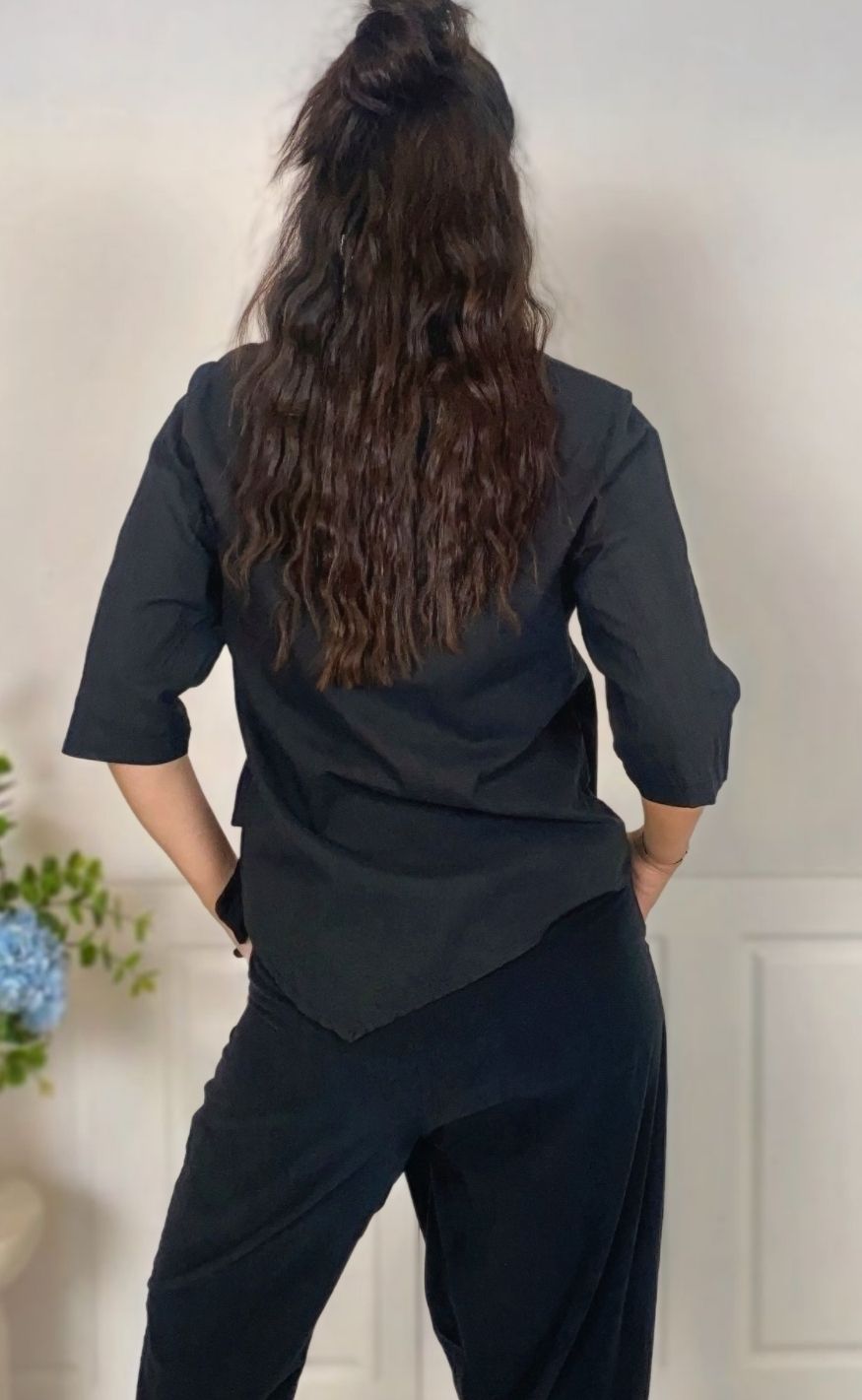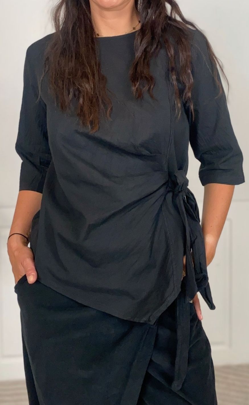Fin wrap bluse fra Marta Du Chateau i en sort nuance.