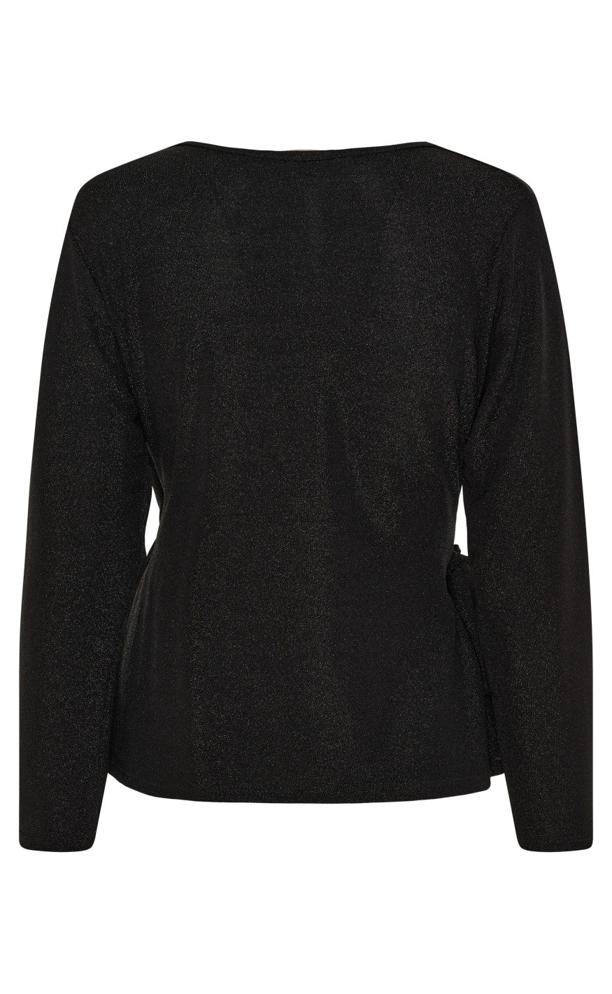 Unik wrapbluse fra Marta Du Chateau i sort, med et glitrende udtryk.