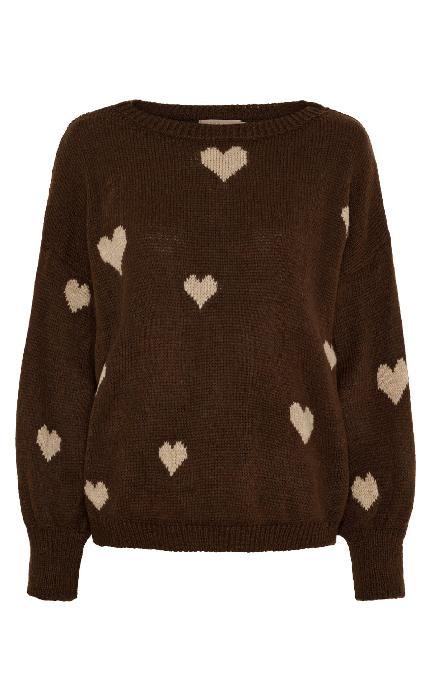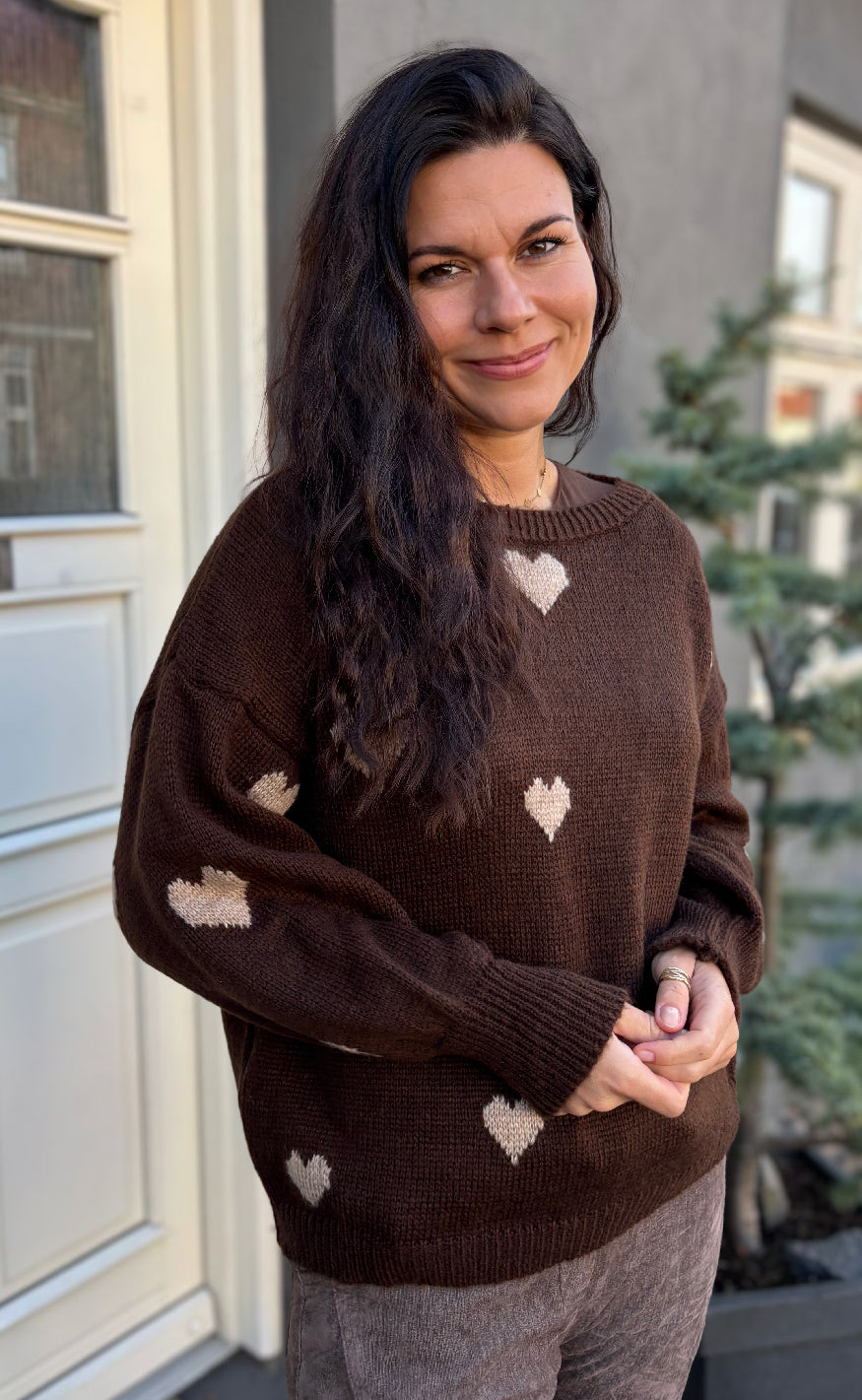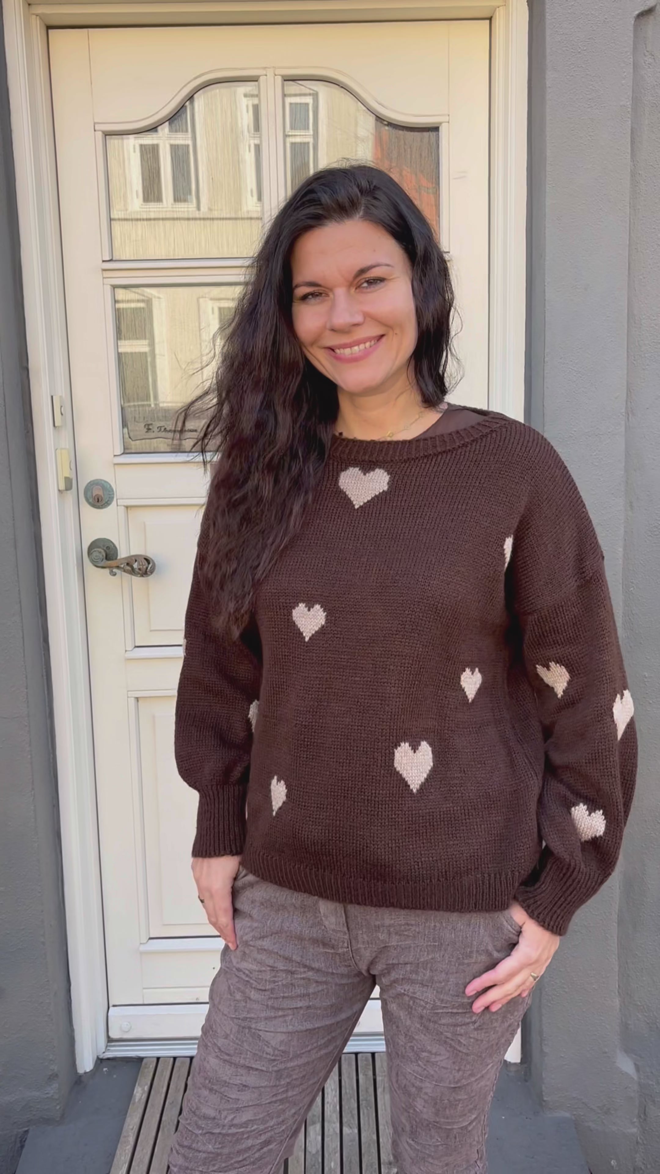 Dejlig striktrøje fra Marta Du Chateau i brun med hjerter.