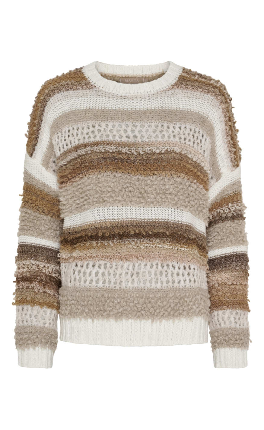 Lækker strik fra Marta Du Chateau i et stribet print i flotte farver samt forskellige teksturer.