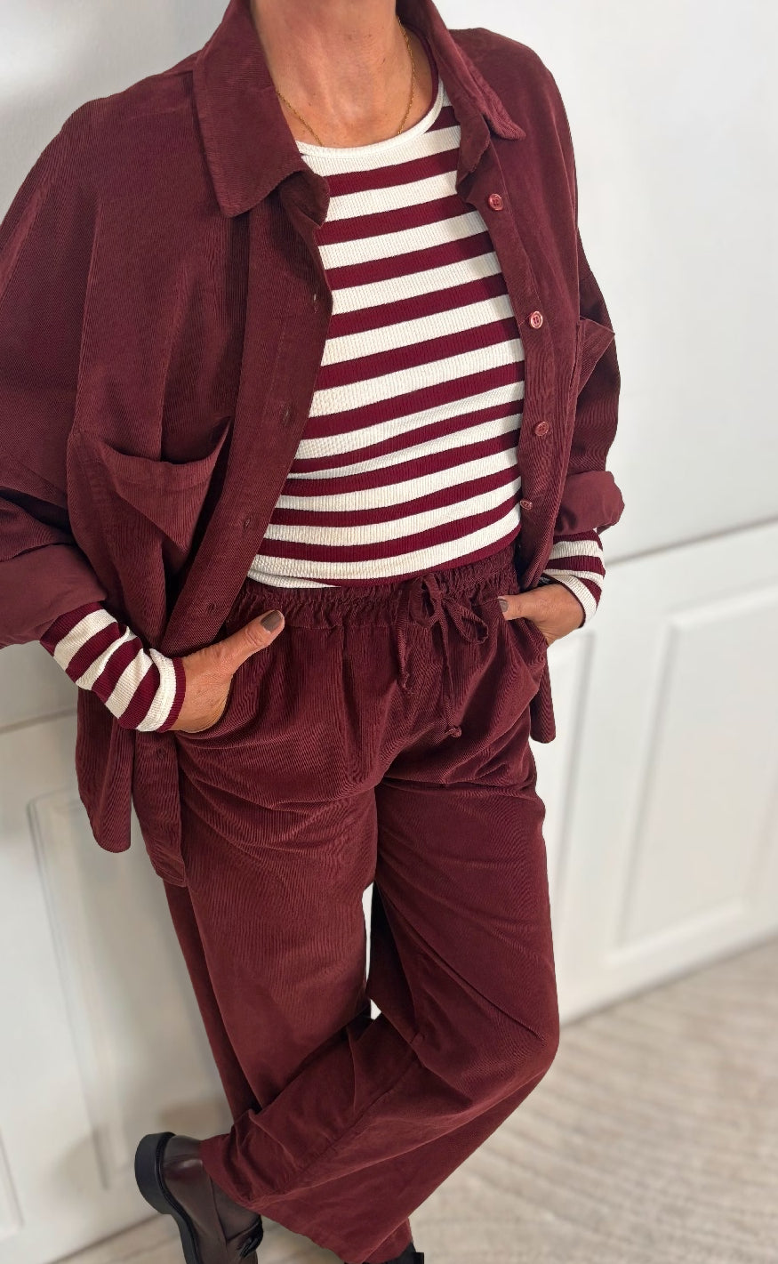 Fin skjorte fra Marta Du Chateau i bordeaux rød, i en fløjs kvalitet.