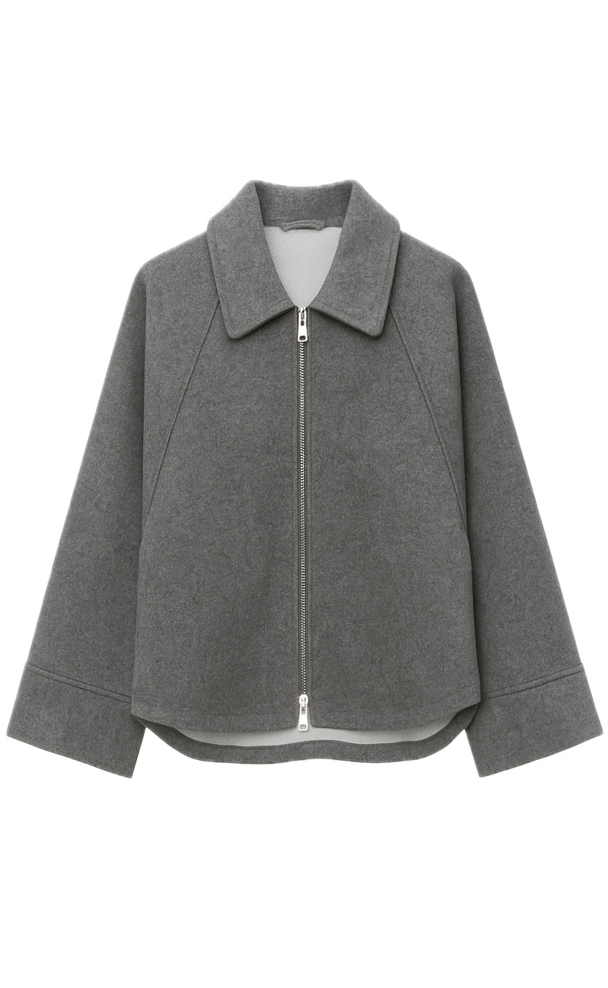 Grå jakke fra Marta Du Chateau med klassisk krave og lynlåslukning foran.