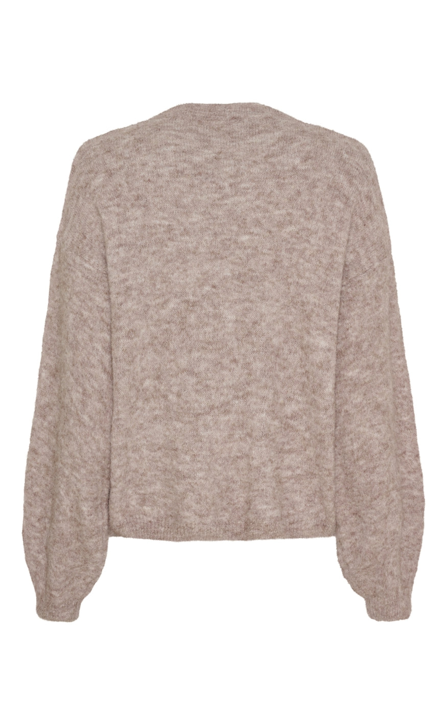 Trøjen har rund hals, lange ærmer og en afslappet pasform. Det tidløse mønster giver et elegant og hyggeligt look, perfekt til både hverdag og lag-på-lag styling.