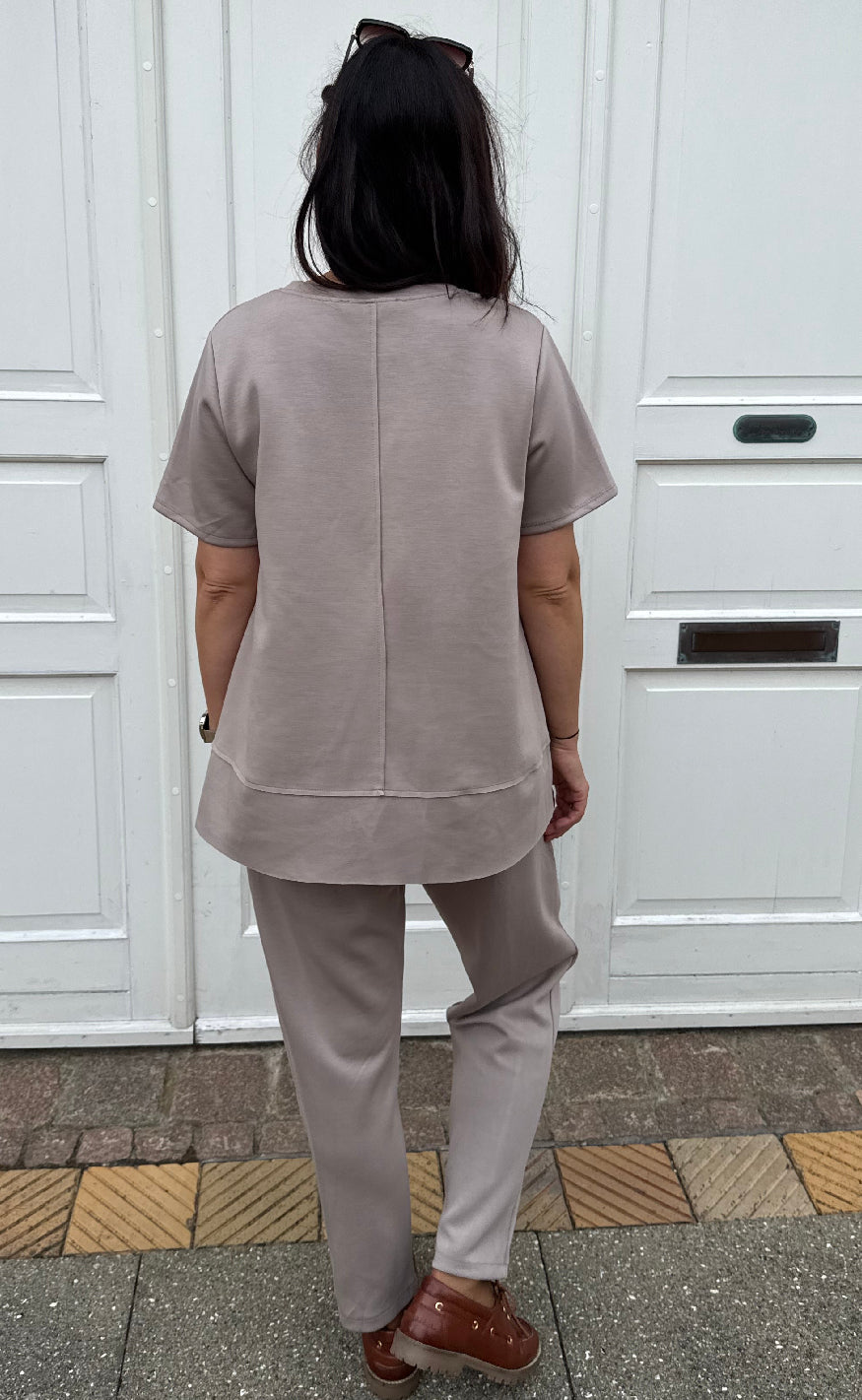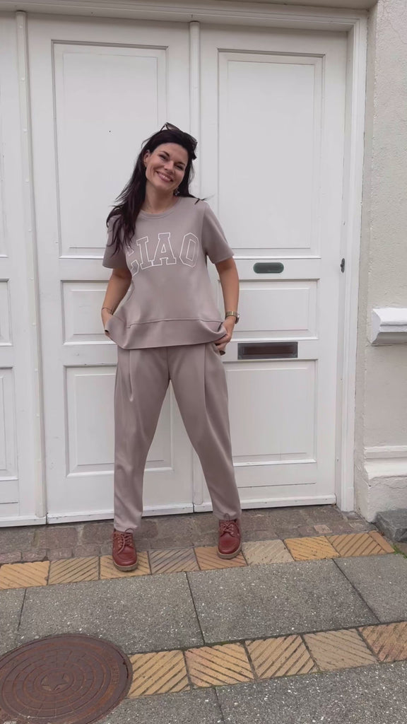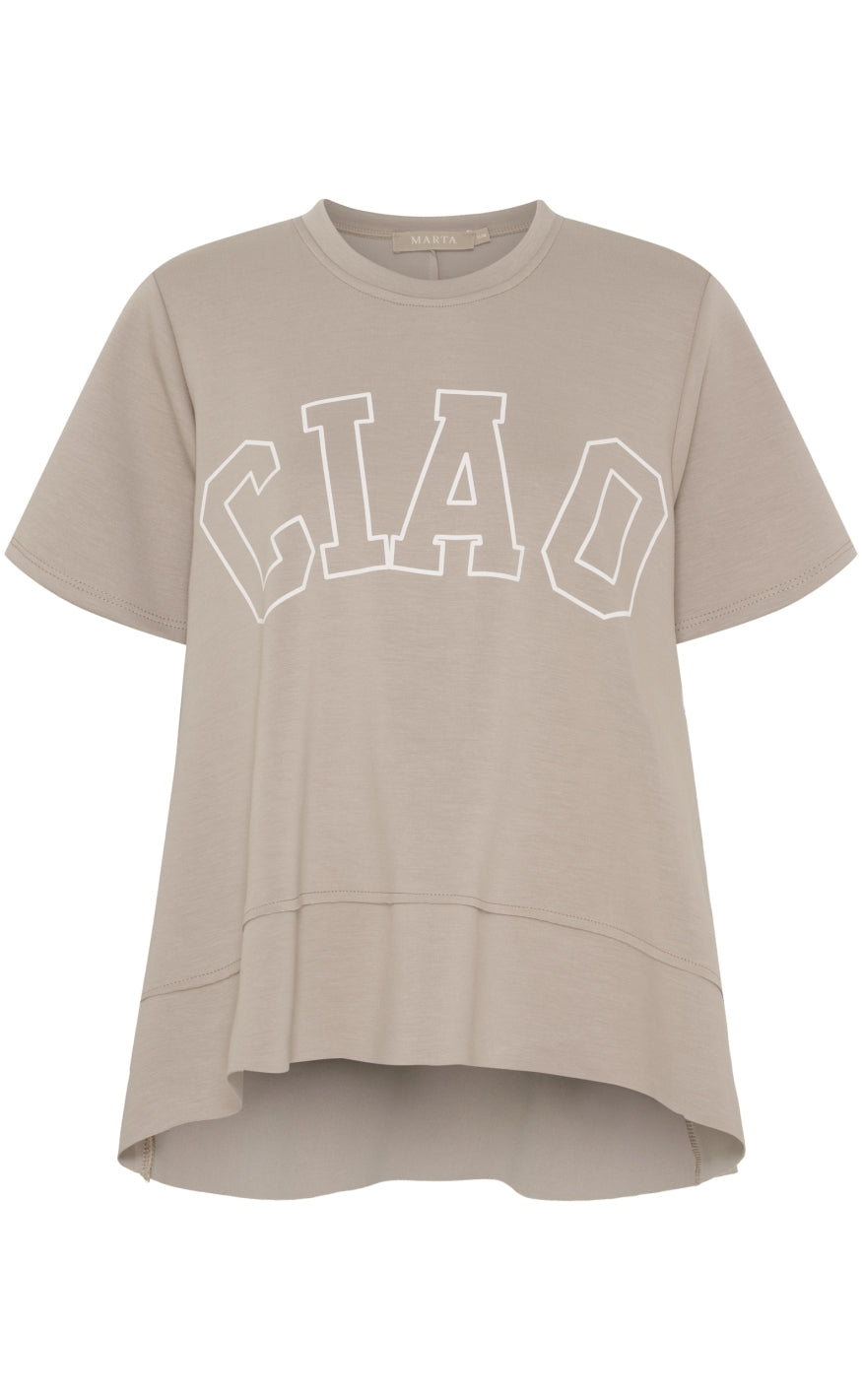 Denne t-shrit har korte ærmer, og skrift på brystet.