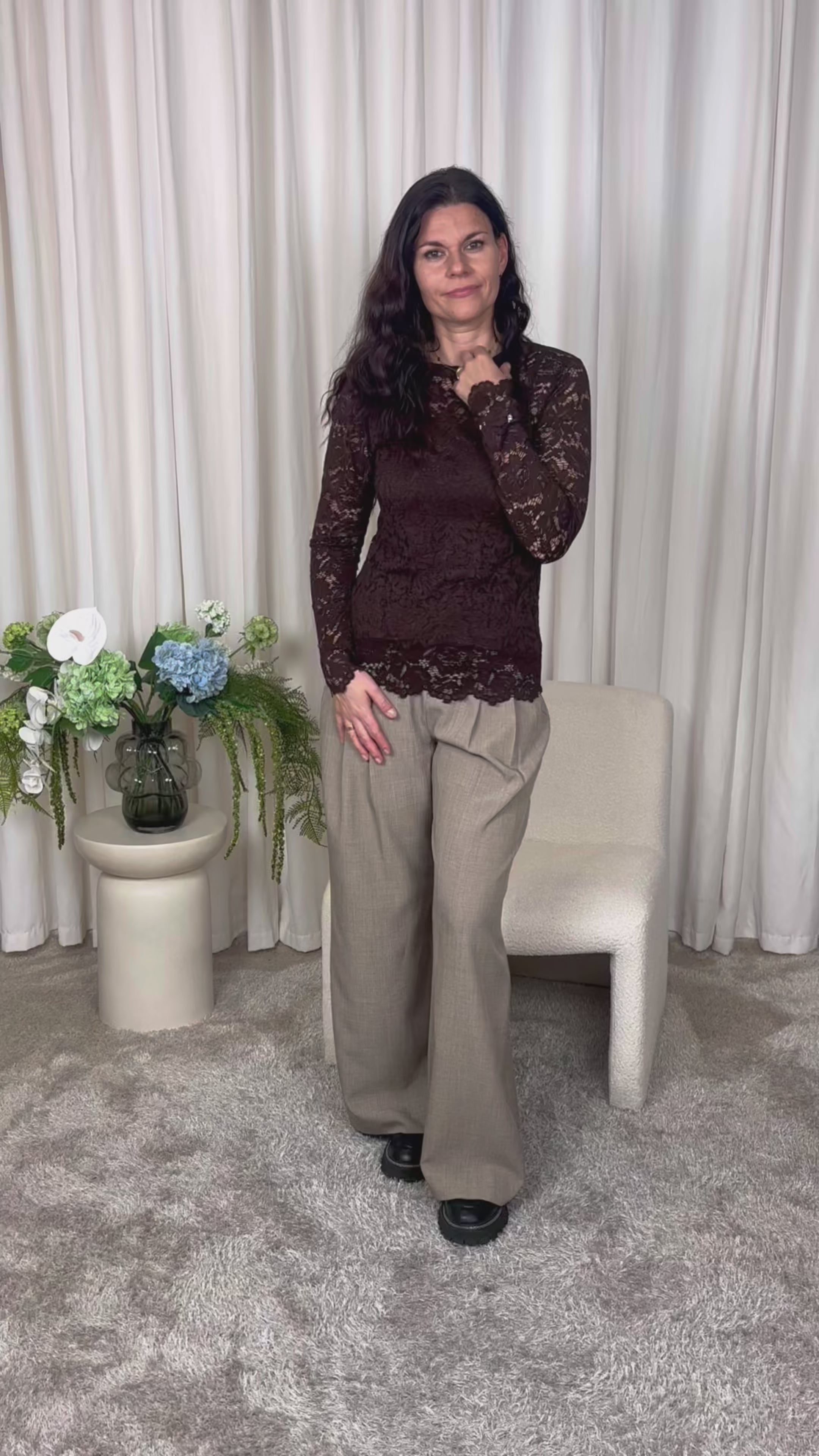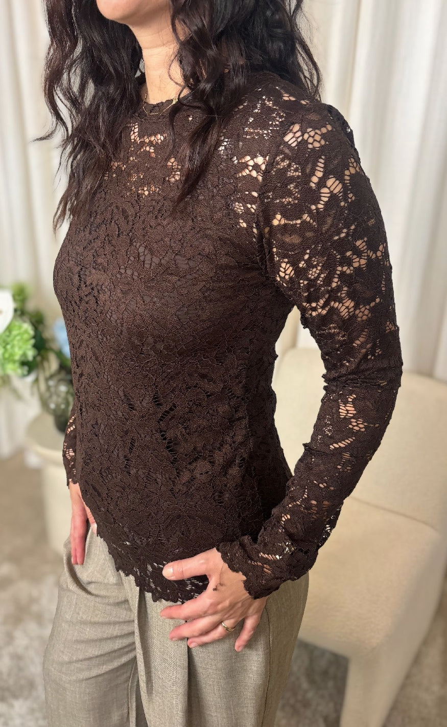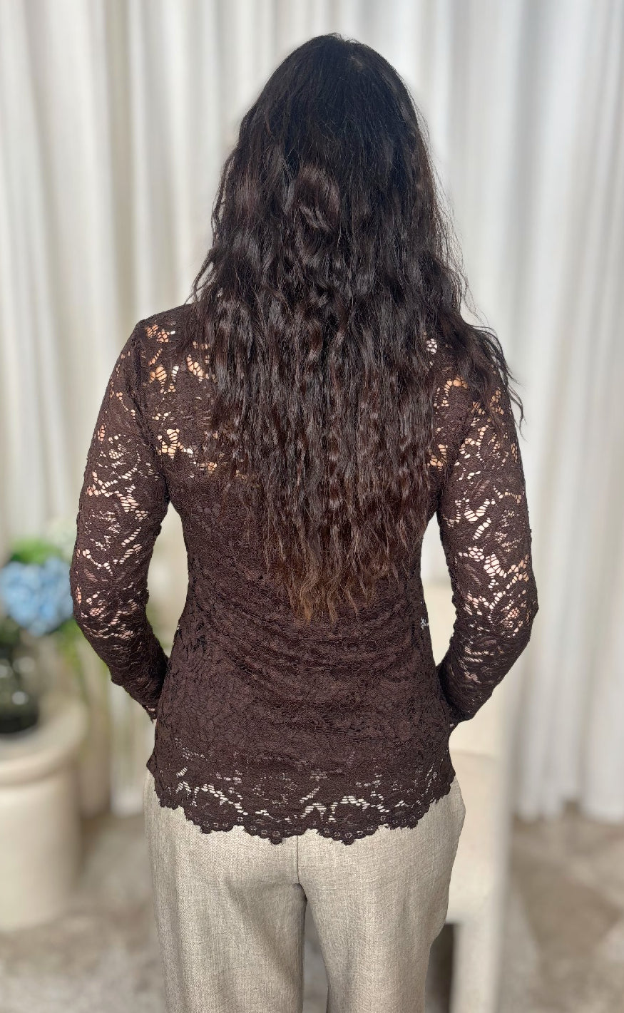 Langærmet blonde Marta Du Chateau i brun.