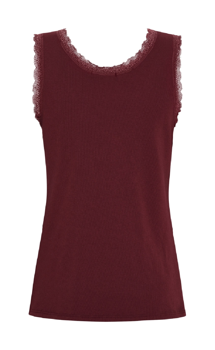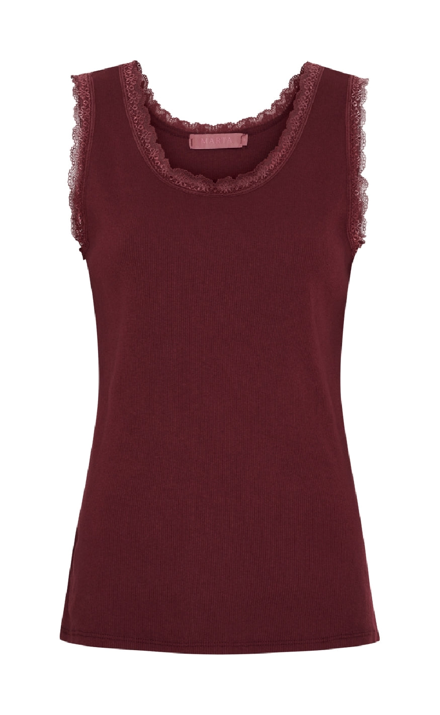 Skøn basis top fra Marta i en smuk bordeaux farve med blonder.