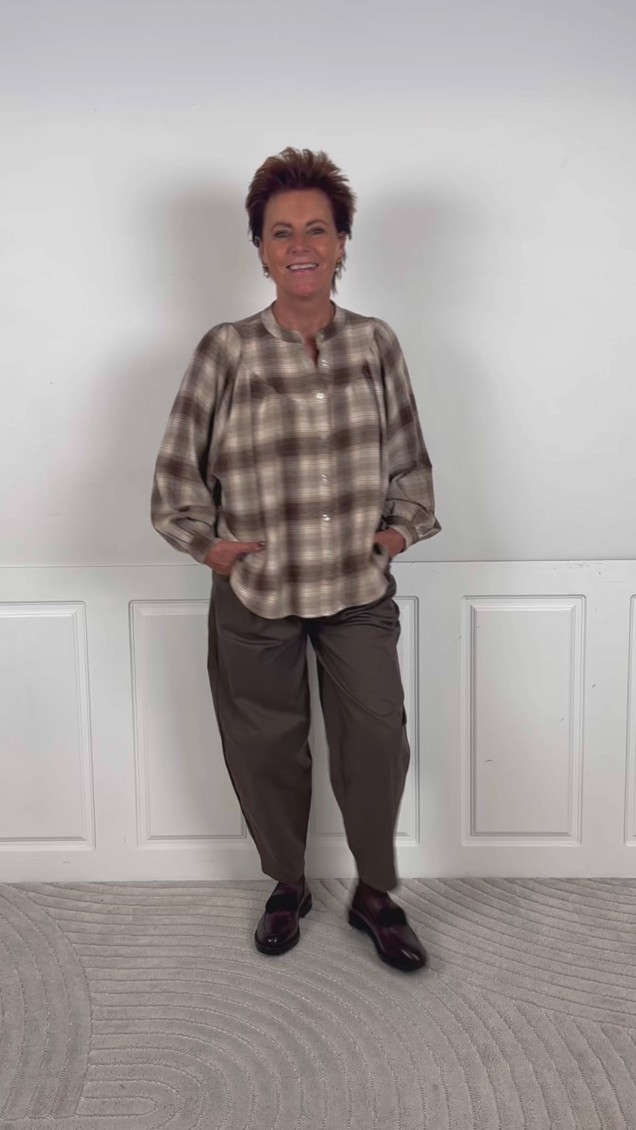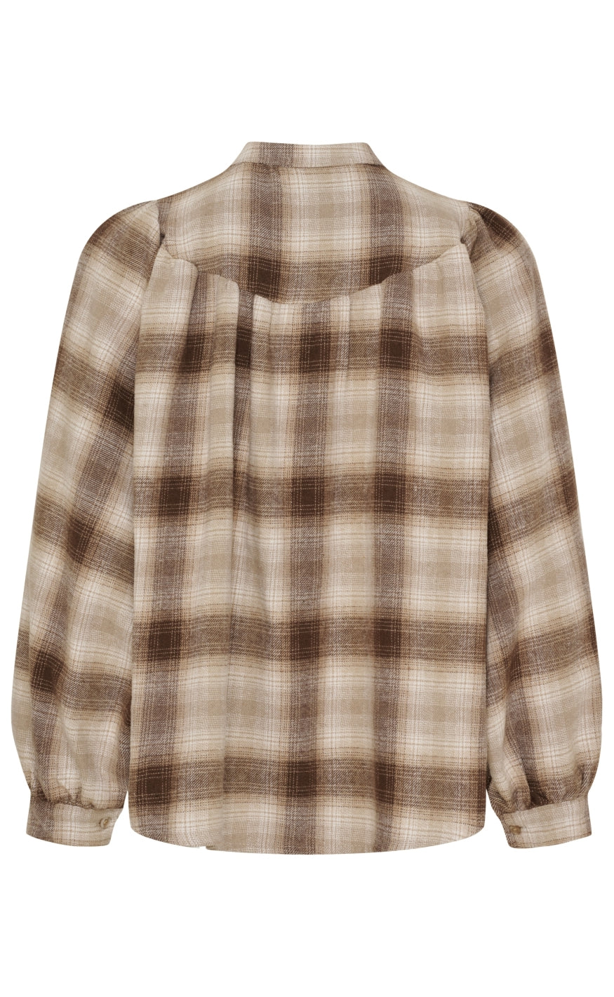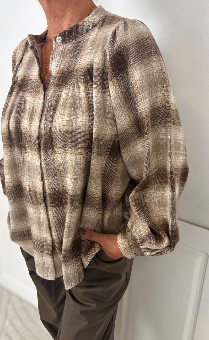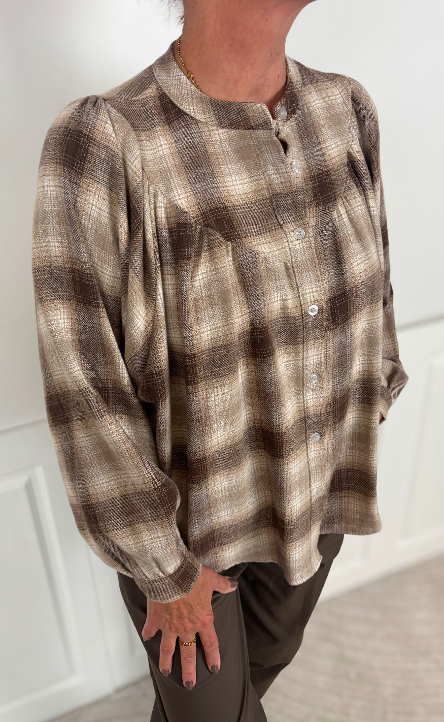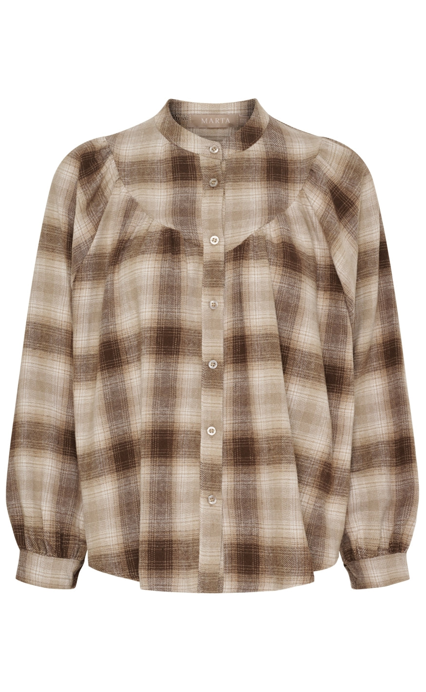Feminin bluse fra Marta Du Chateau i et brunt ternet print.