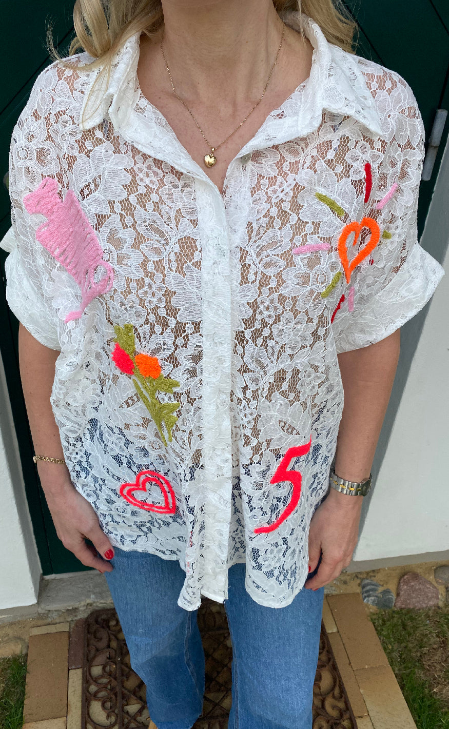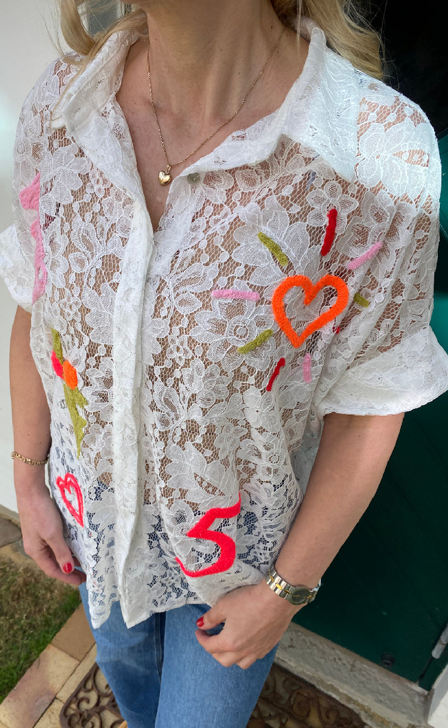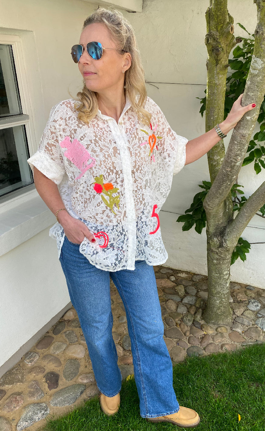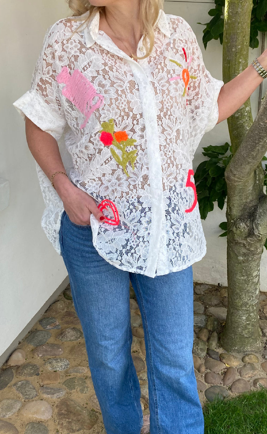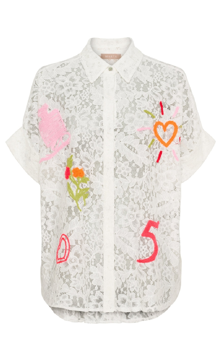 Blondeskjorte fra Marta Du Chateau i hvid med fine detaljer.