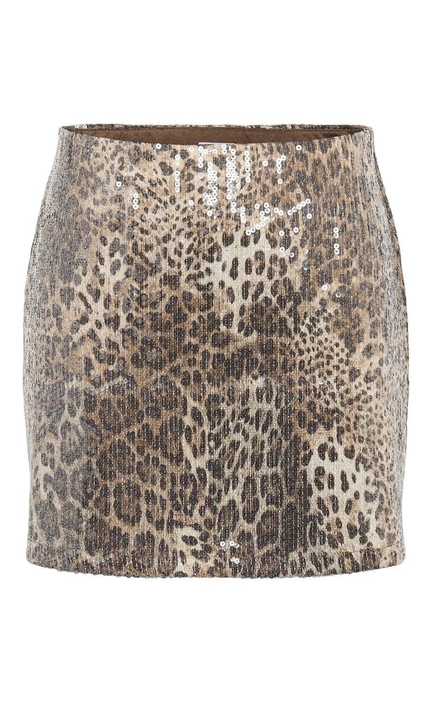 Nederdelen er beklædt med palietter og har en mini længde.