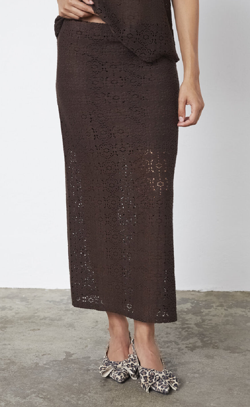 Flot nederdel fra Sisters Point i et gennemvævet mønster, i brun.