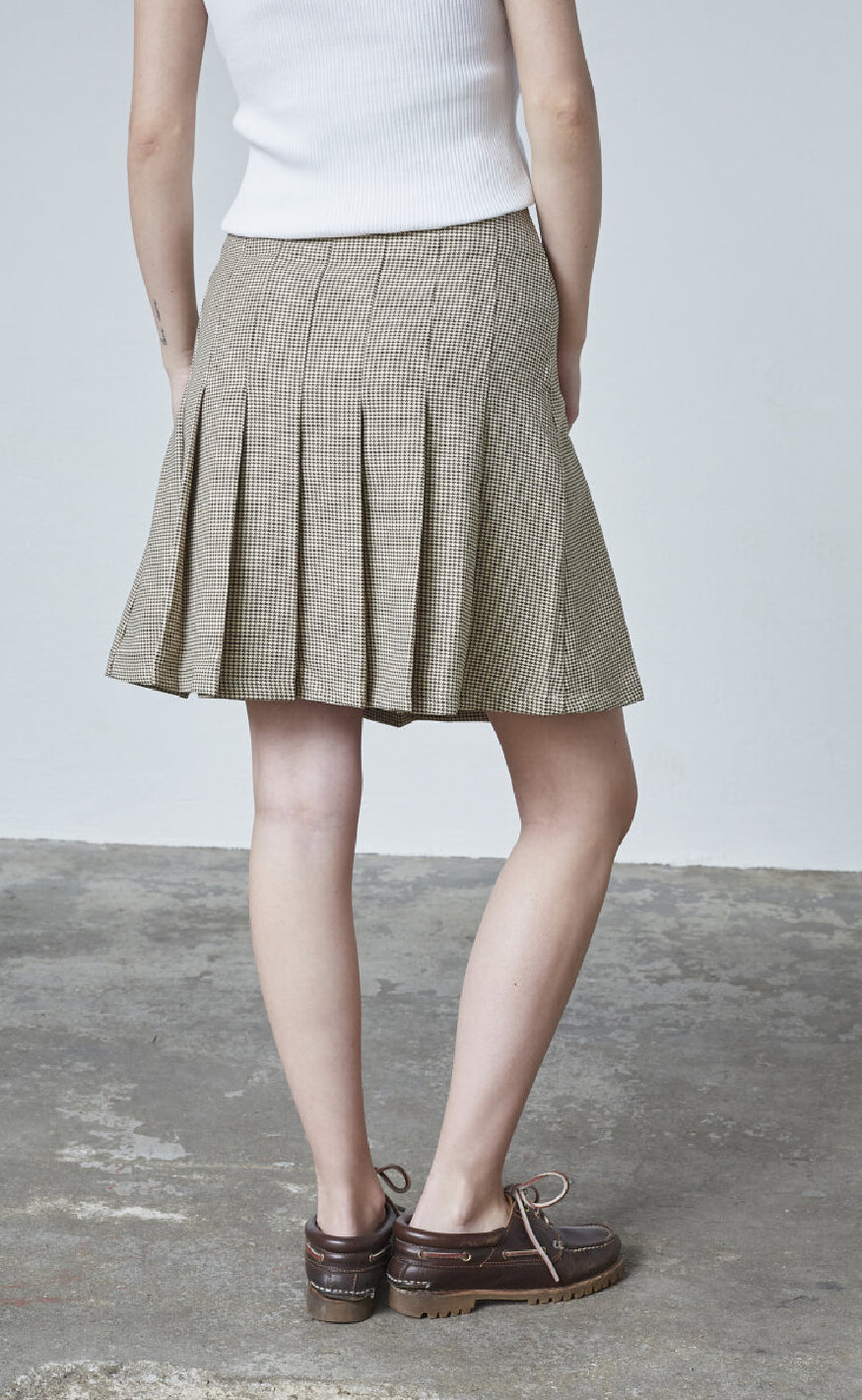 Plisseret nederdel fra Sisters Point i et brunt check print.