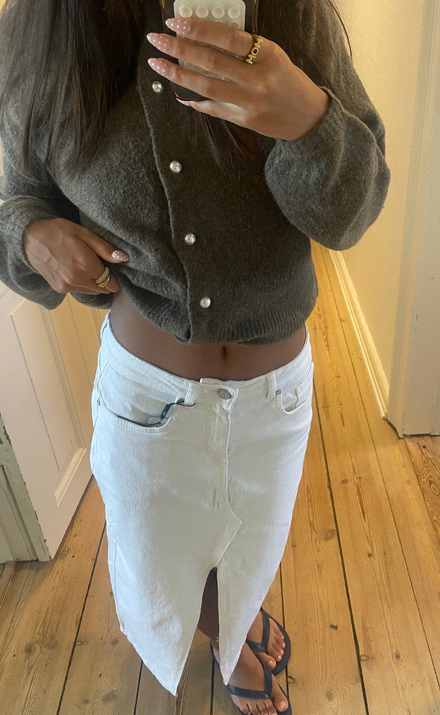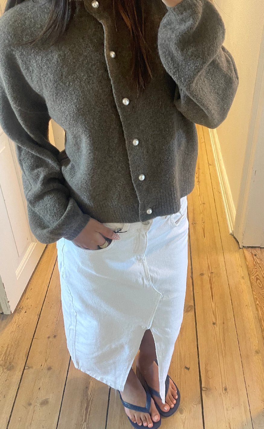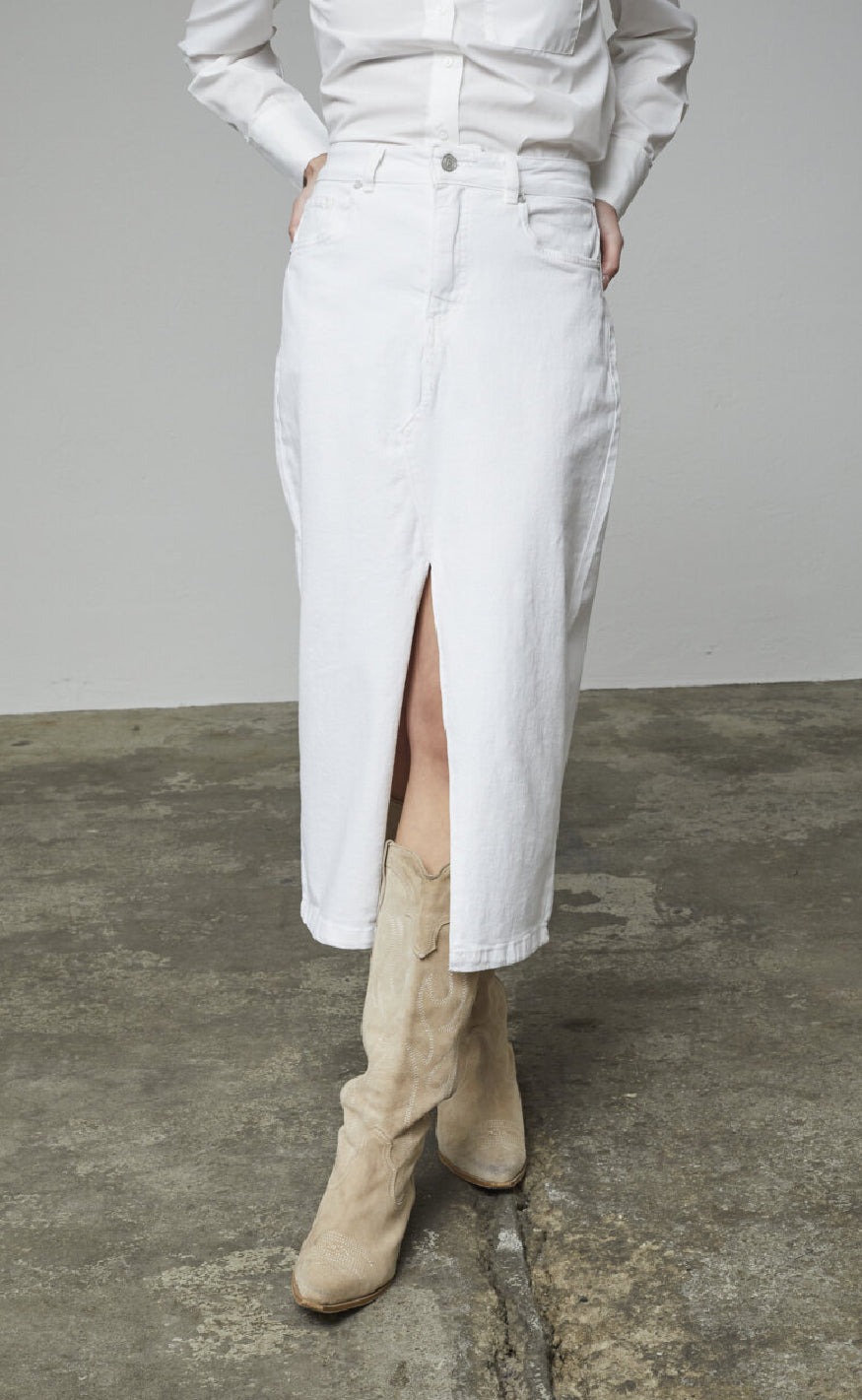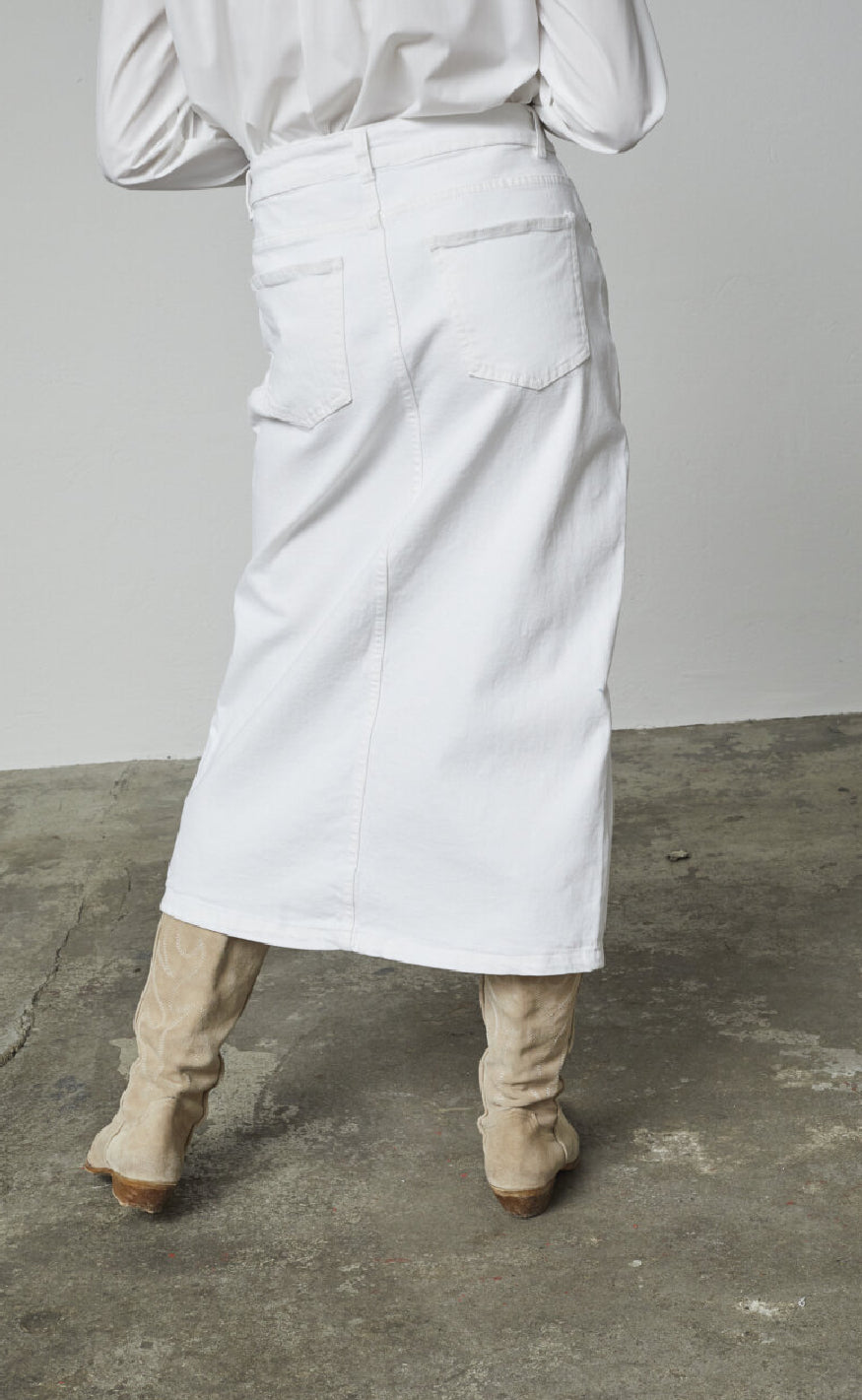 Hvid denim nederdel fra Sisters Point i en midi længde.