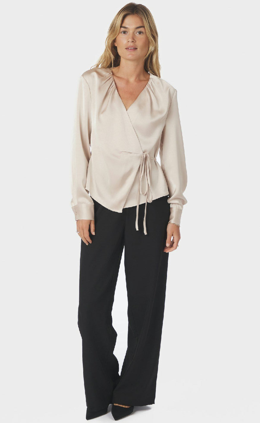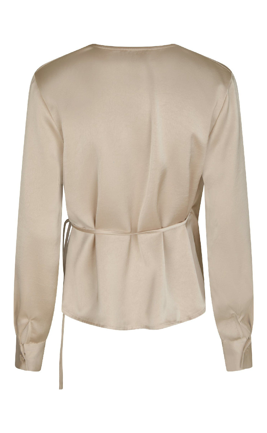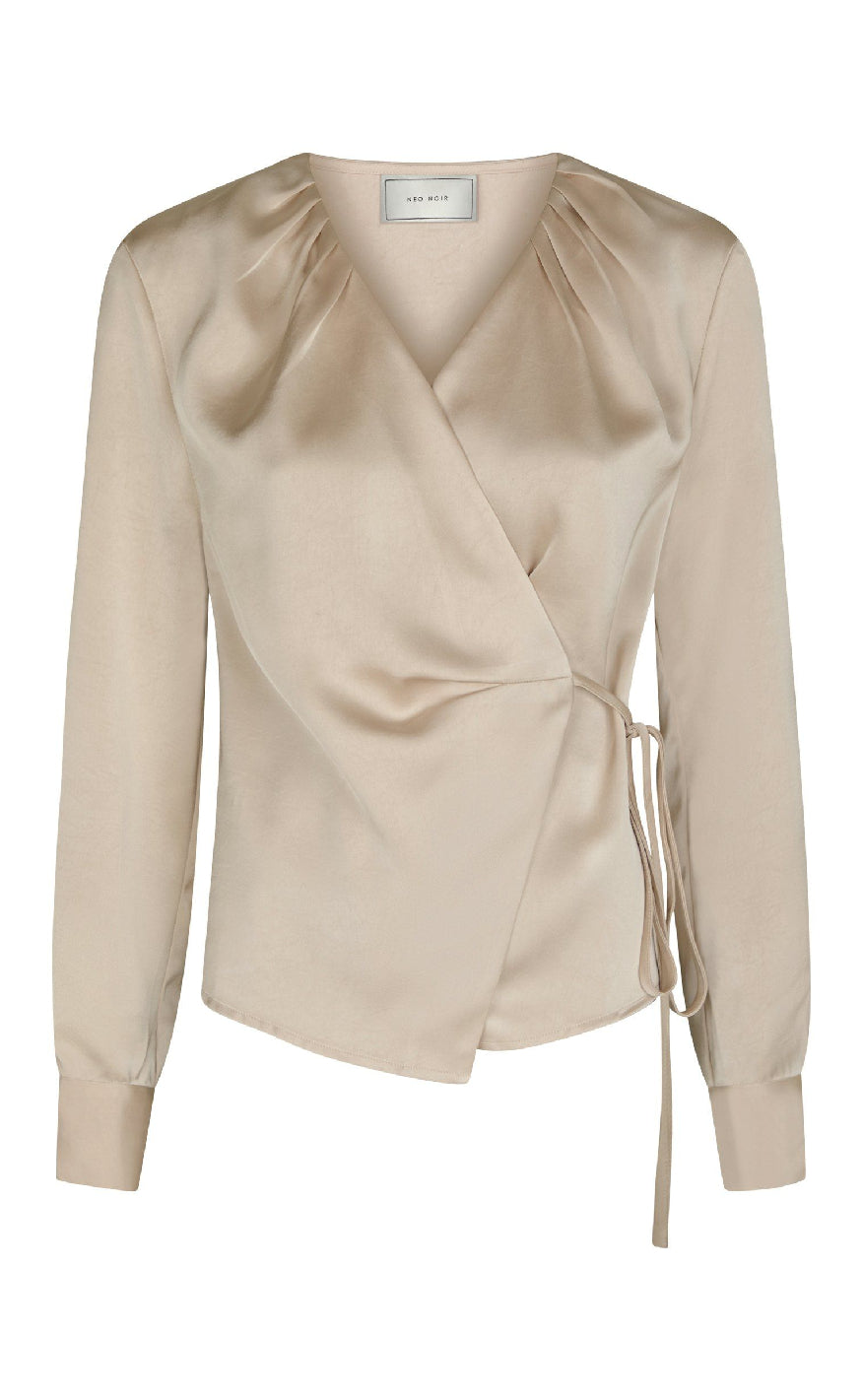 Fin satin bluse fra Neo Noir i beige, med lange ærmer.