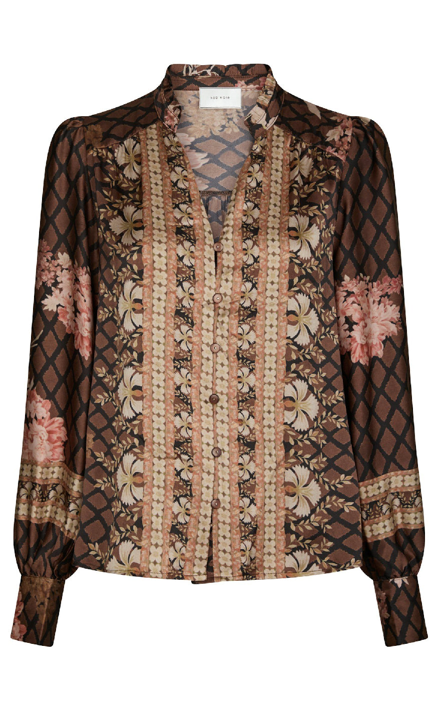 Feminin bluse fra Neo Noir med et smukt grafisk og blomster print.