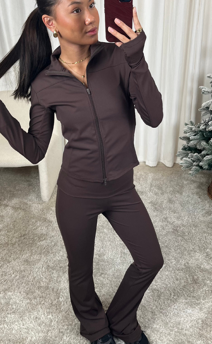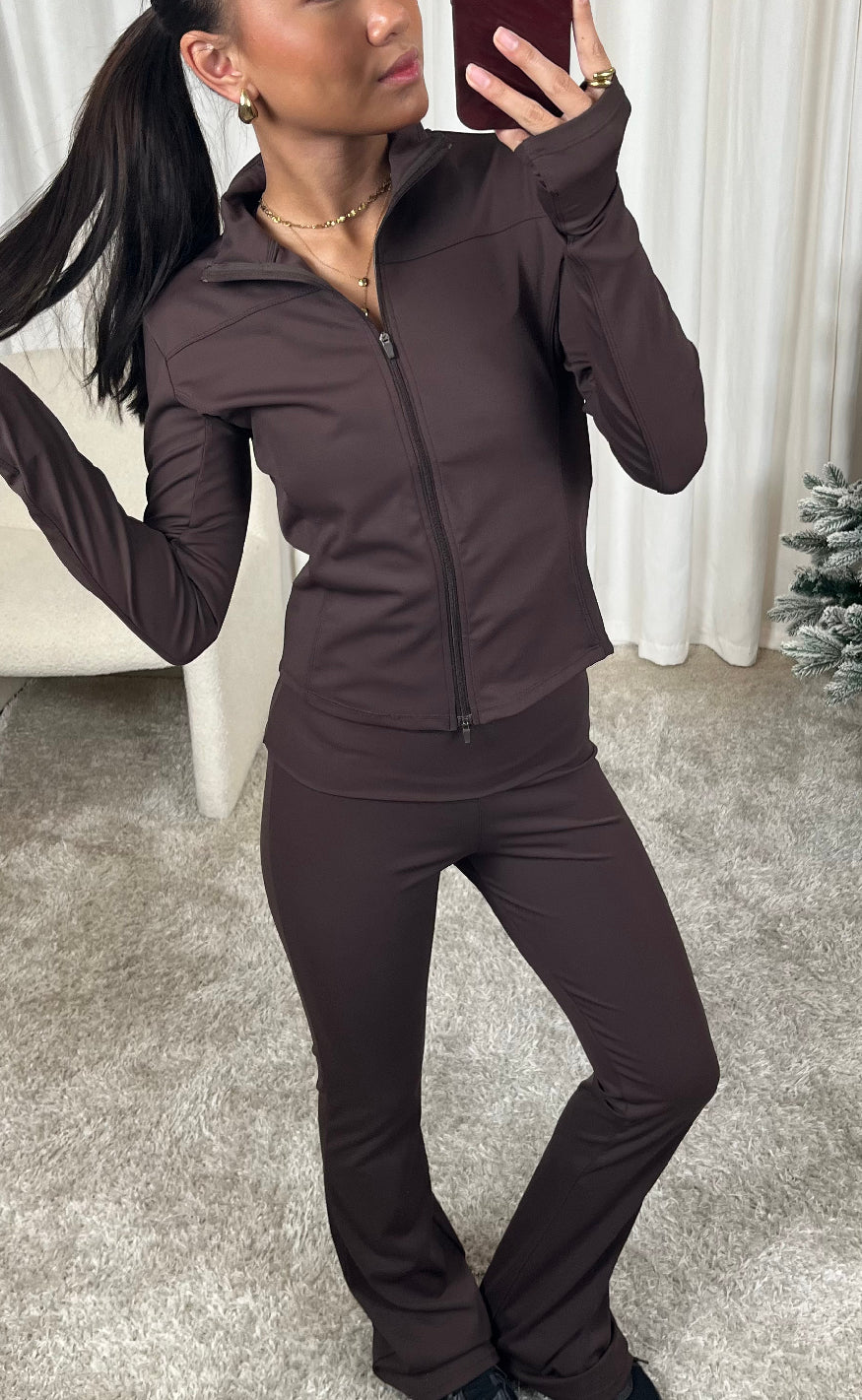 Neo Noir Bluse - Nolana Zip - Chocolate Brown