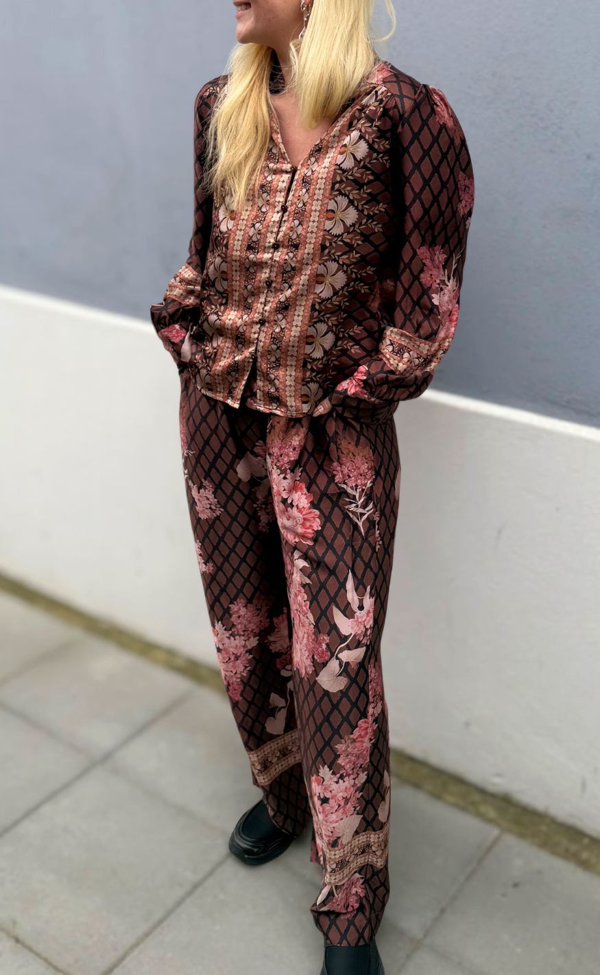 Feminin bluse fra Neo Noir med et smukt grafisk og blomster print.