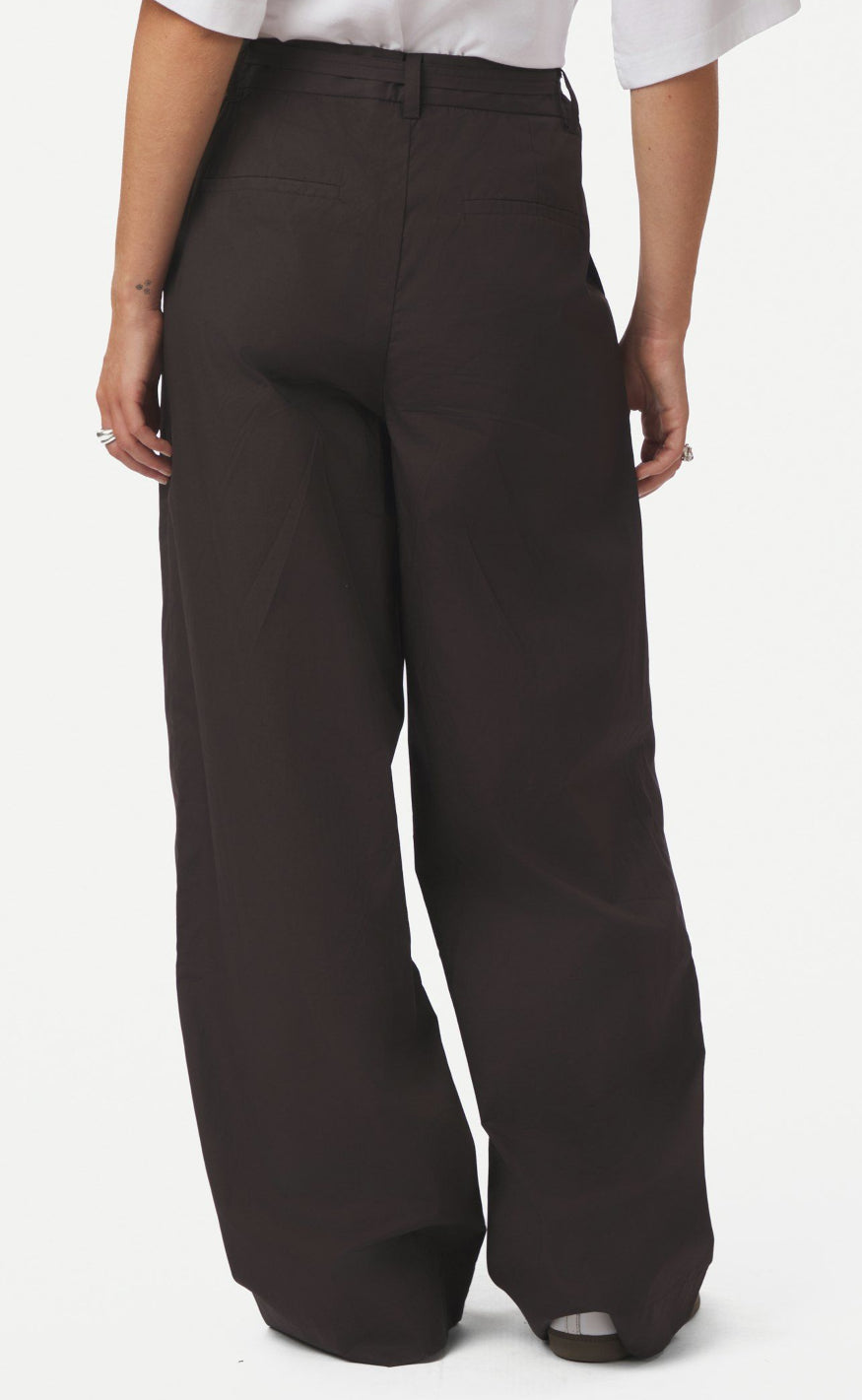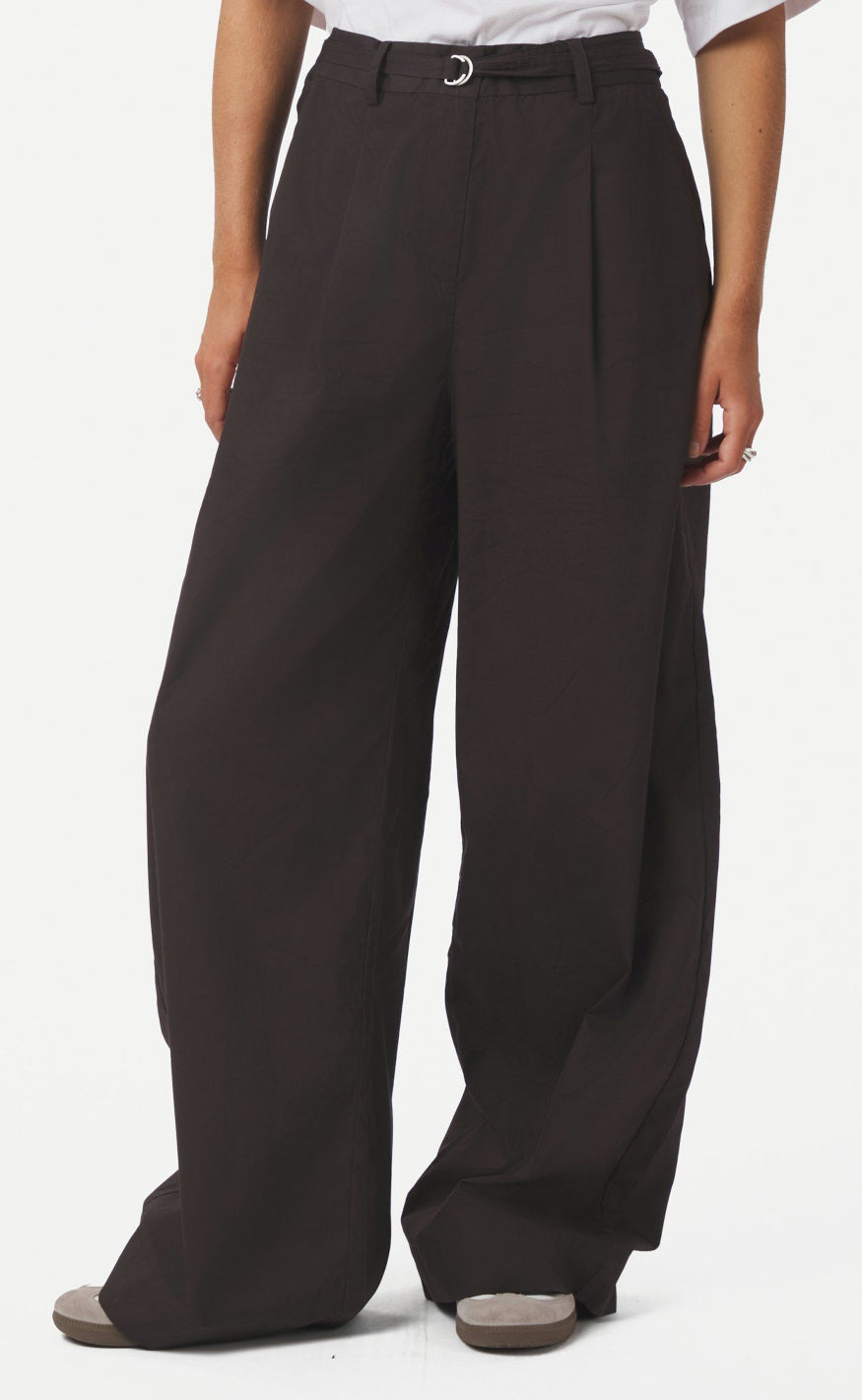 Wide leg bukser fra Neo Noir i en mørk brun nuance med elegant look.