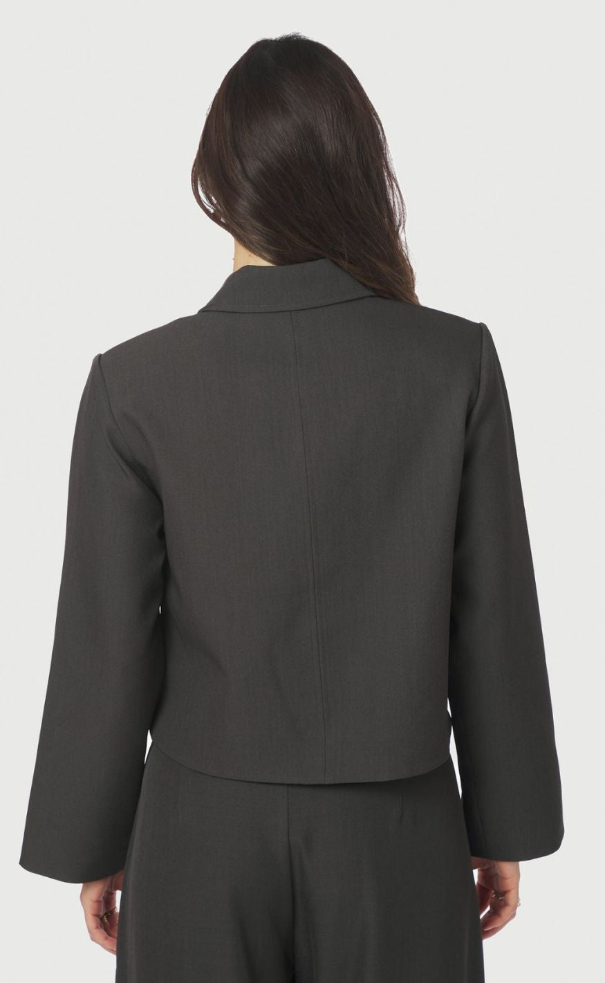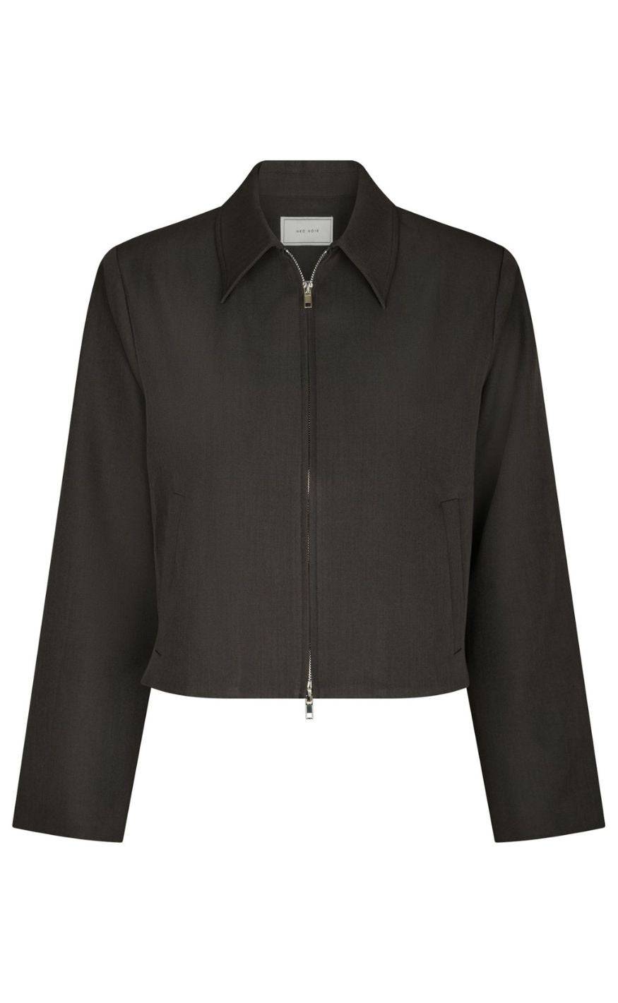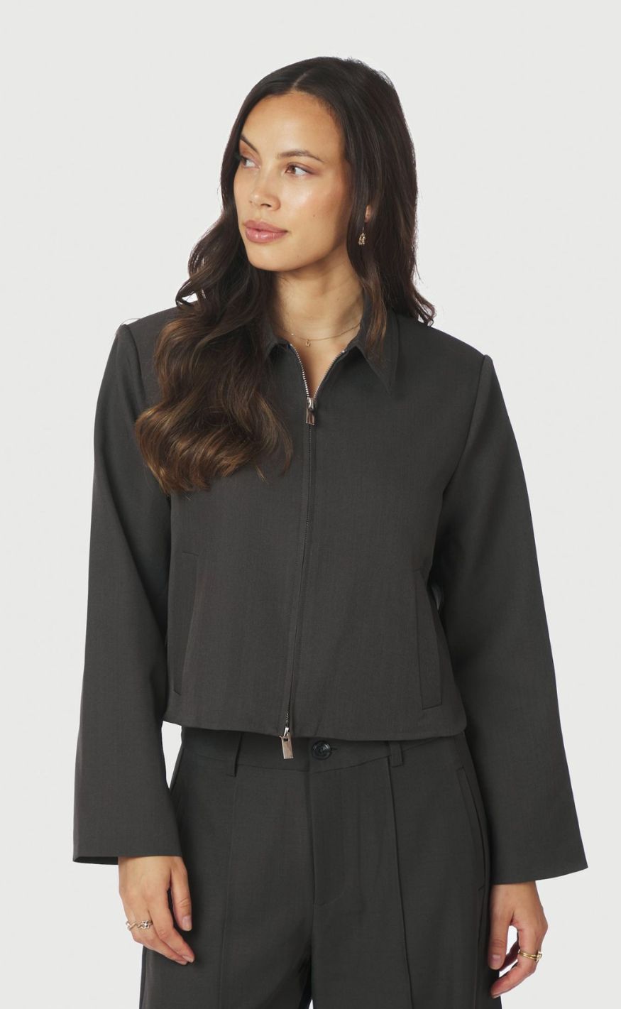 Designet med klassisk krave og lynlukning, der giver et rent, sofistikeret look med struktur.