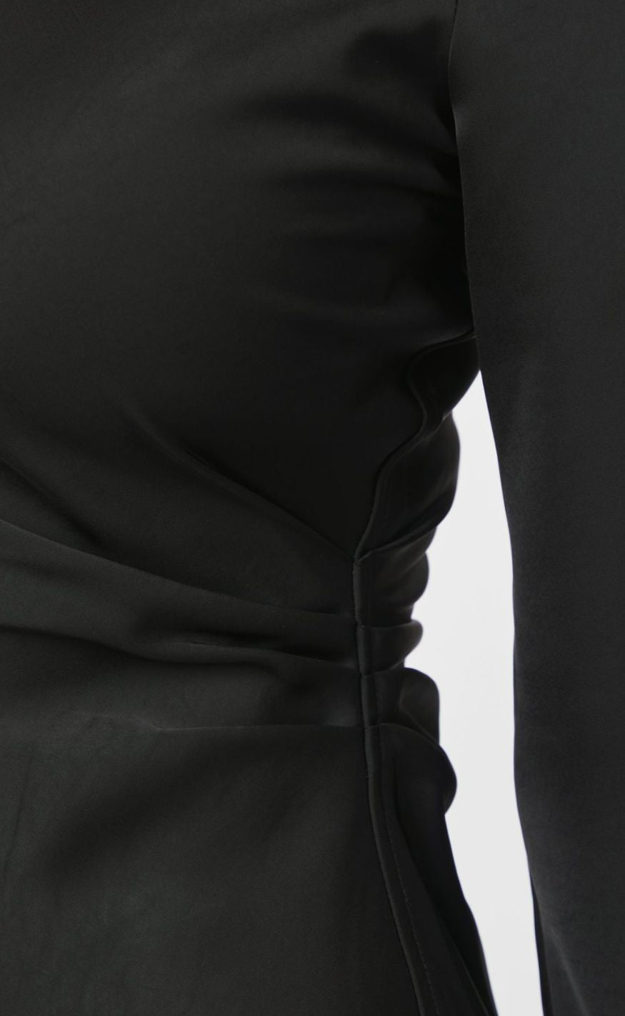 Designet med let drapering i taljen og en ren silhuet, der giver et sofistikeret og tidløst look.