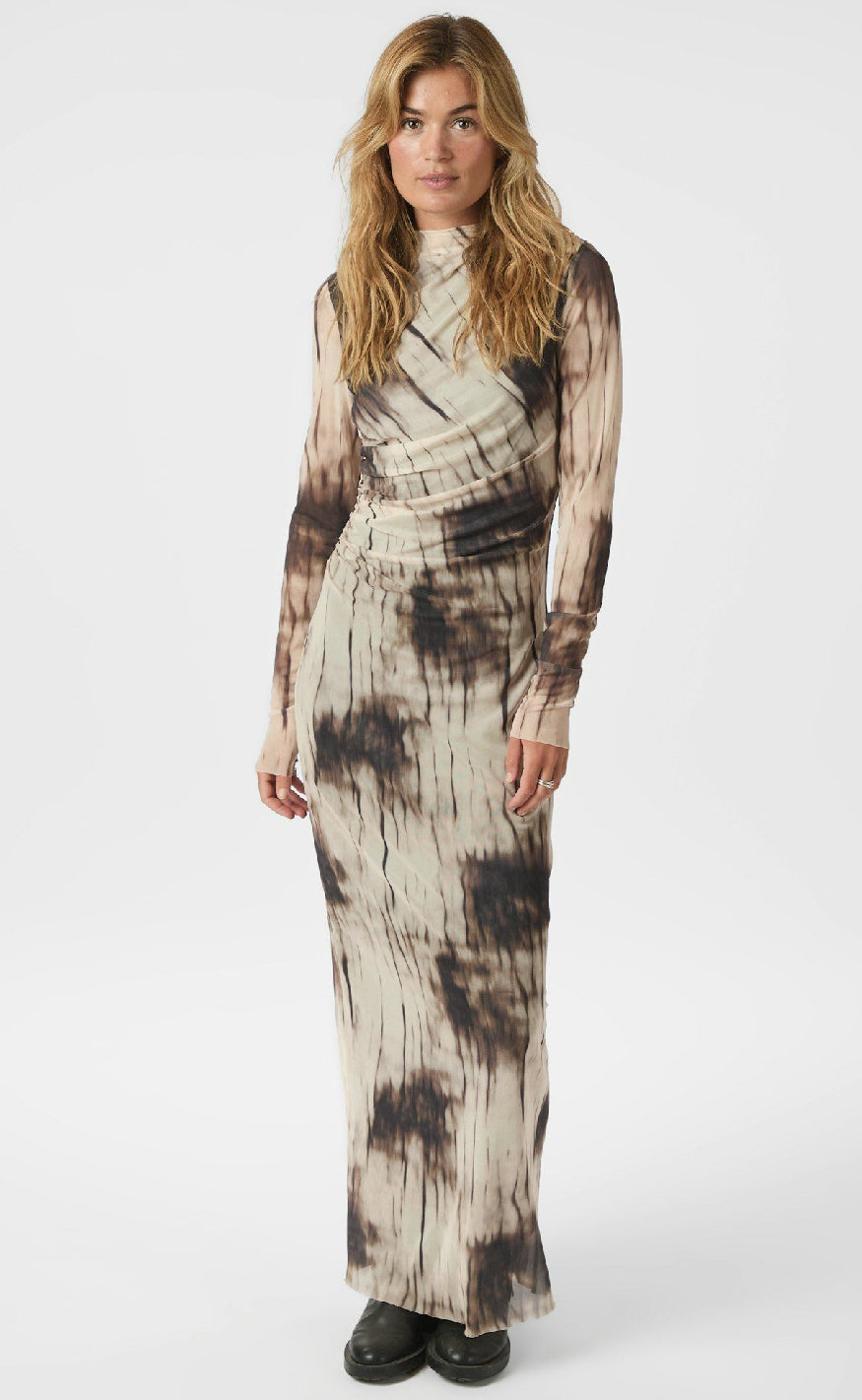 Feminin meshkjole fra Neo Noir i et brunt falmet print.