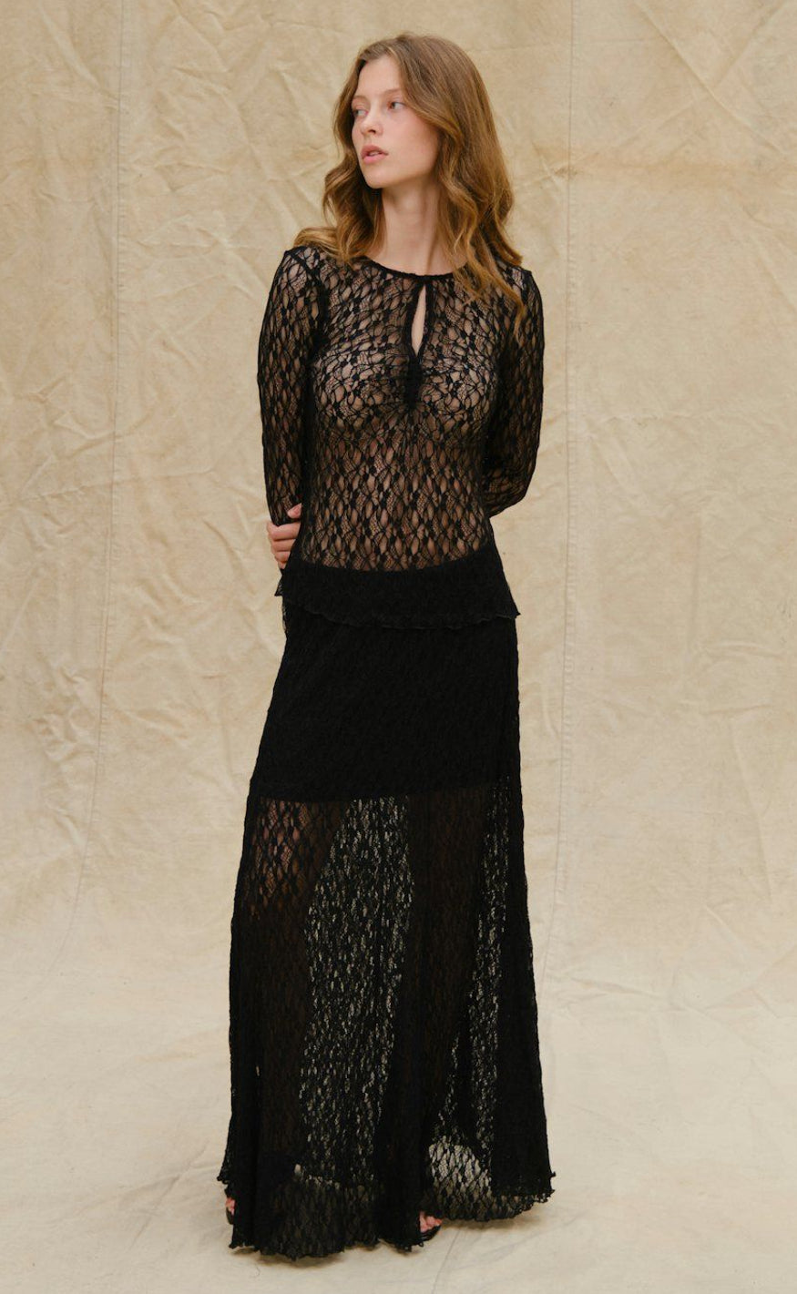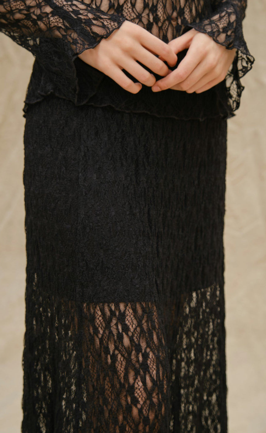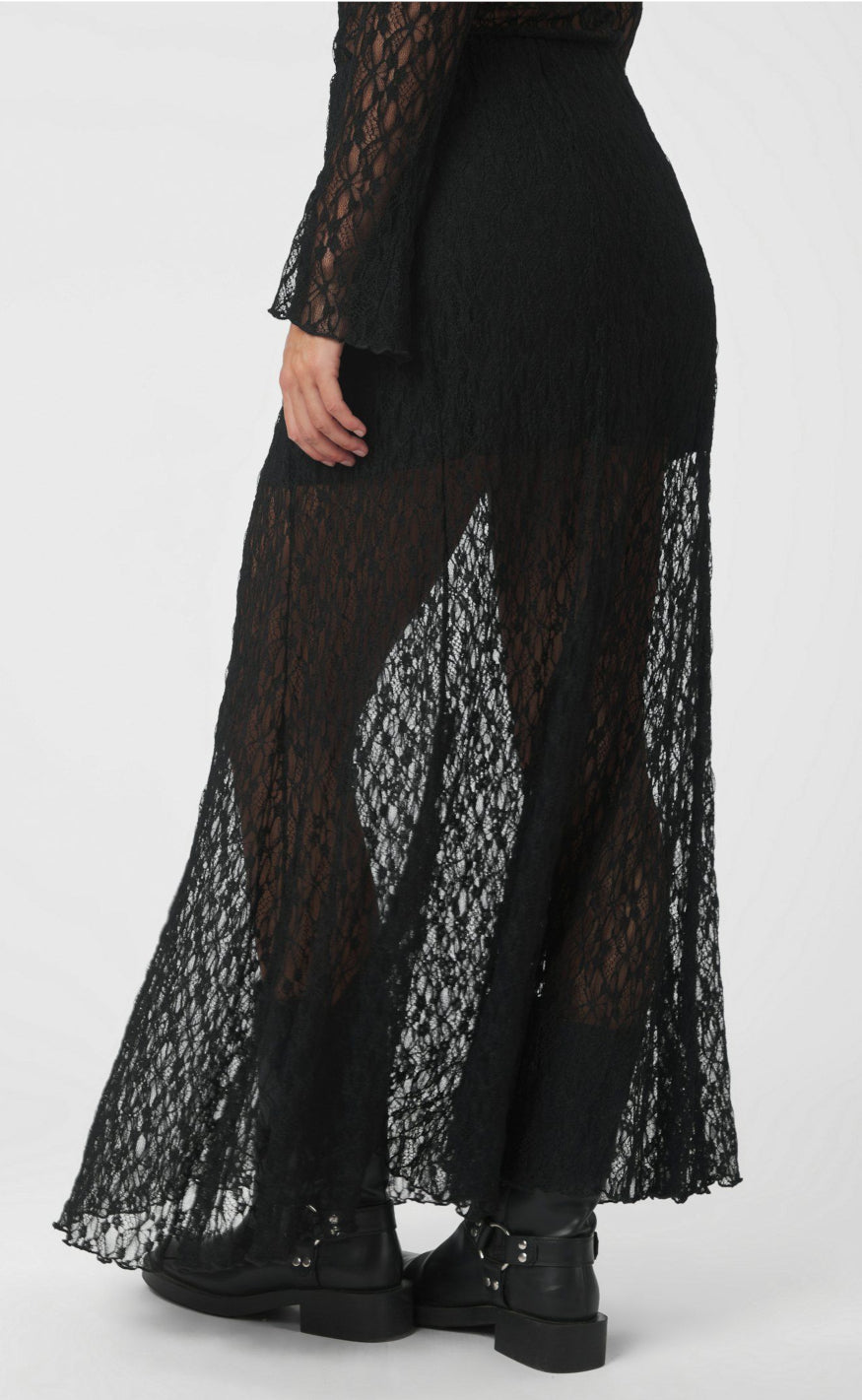 Lang nederdel fra Neo Noir i sort blonde med elegant og feminin stil.