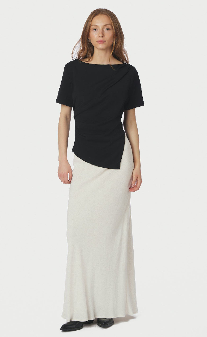 Sort T-shirt fra Neo Noir med asymmetrisk design og draperede detaljer foran.