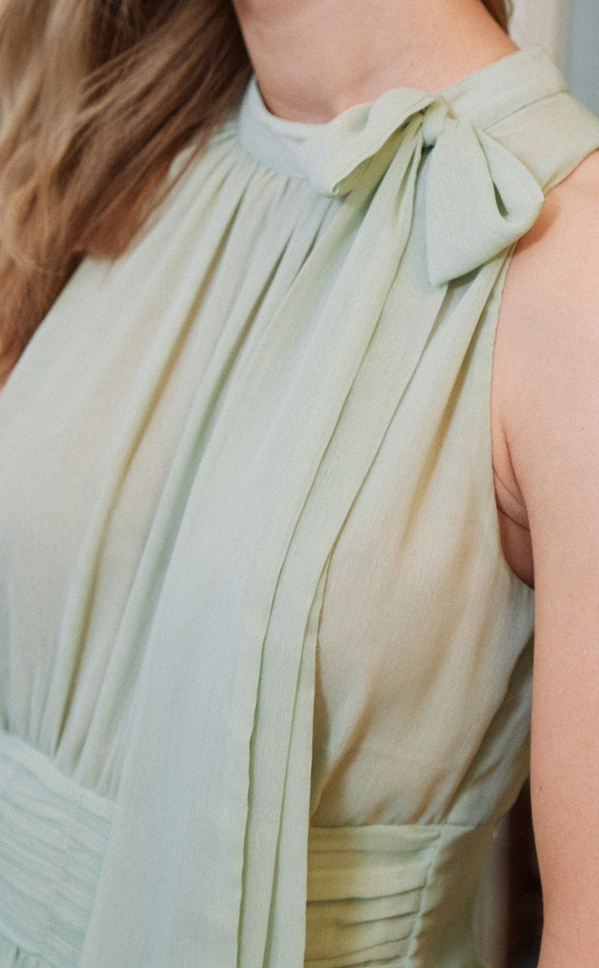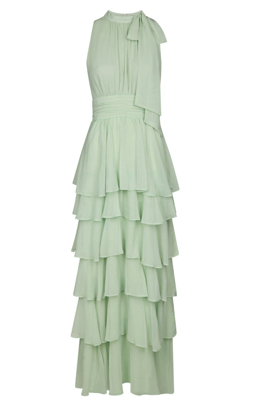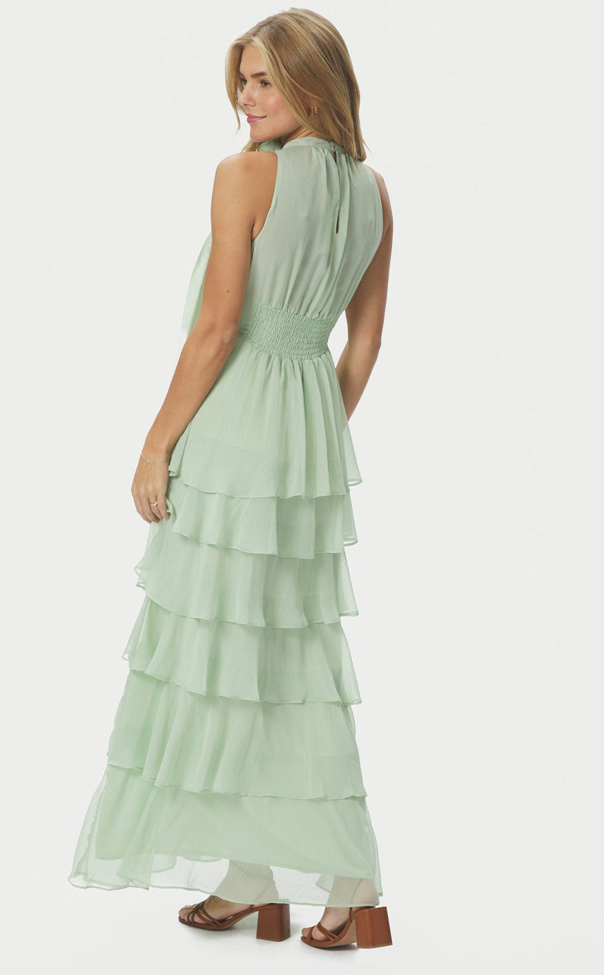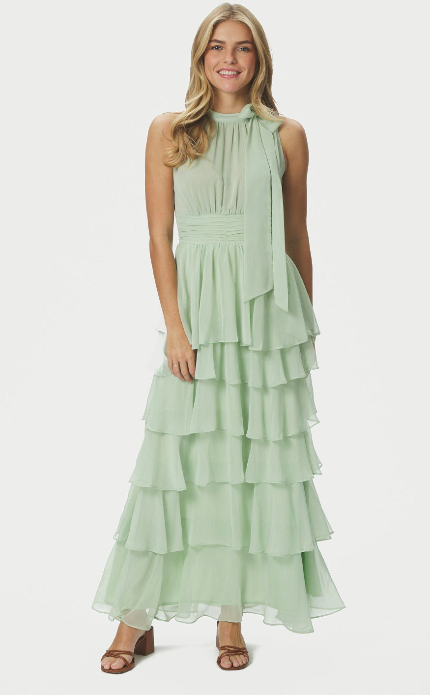 Smuk og elegant kjole fra Neo Noir i en mint grøn nuance med et eksklusivt, etageopdelt skørt.