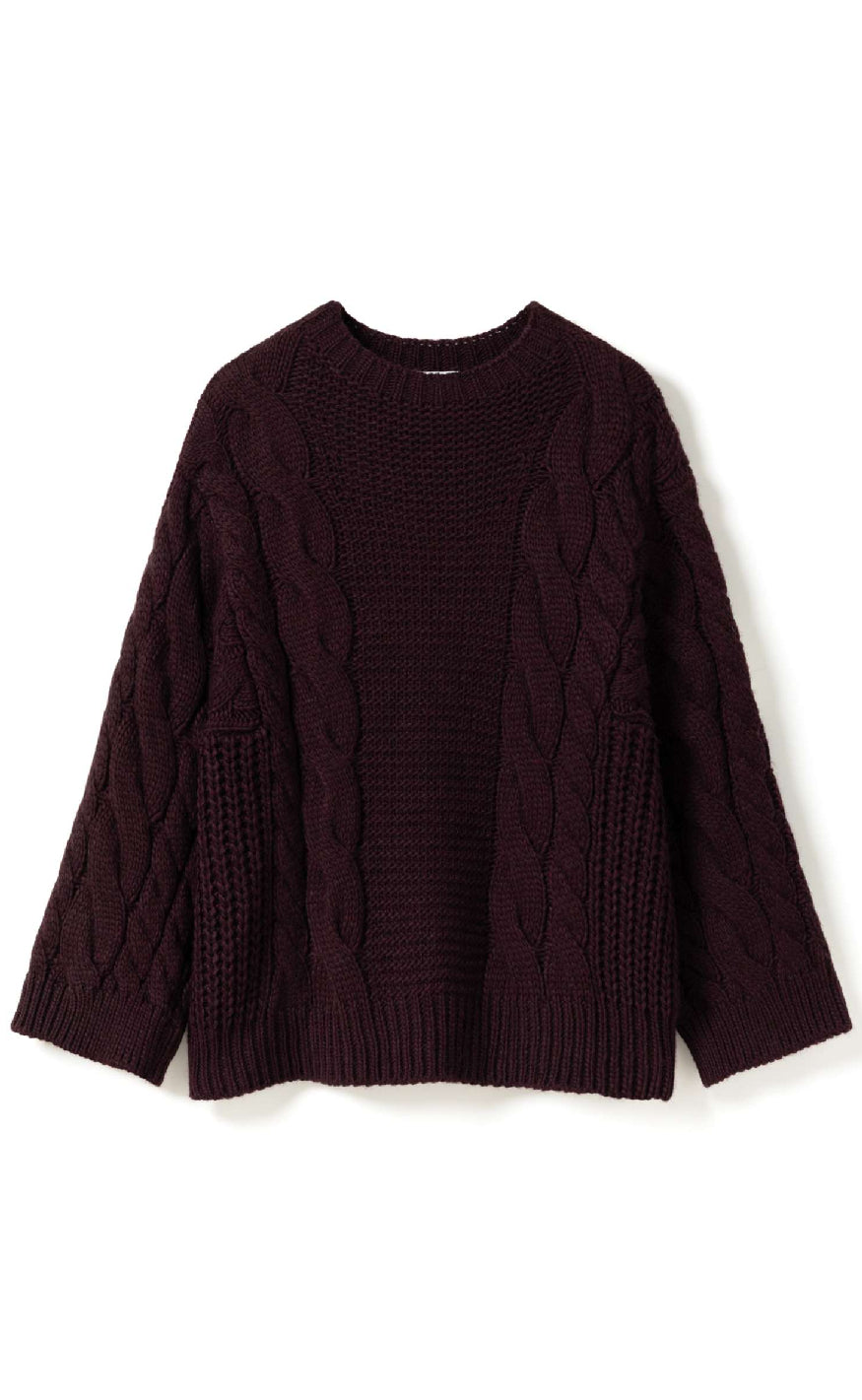 Strik fra Noella i rød, med oversize pasform i et klassisk kabelstrik, der gør den tidløs og nem at bruge sæson efter sæson.
