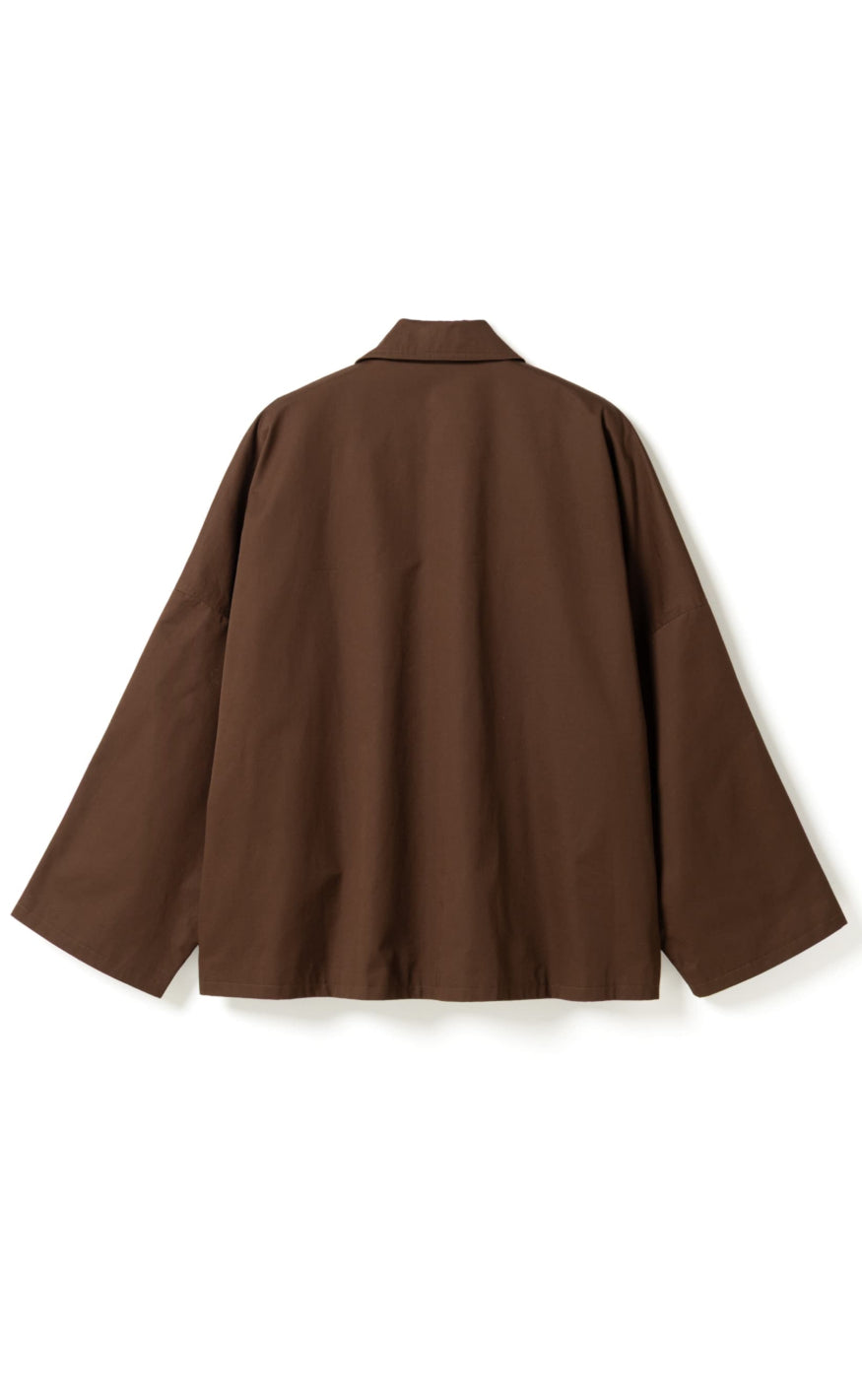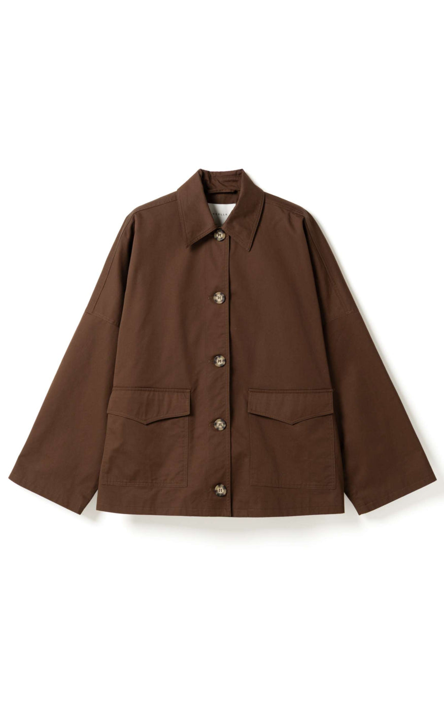 Jakken har klassisk krave, gennemgående knaplukning og store frontlommer med klap samt en lige, let boxy pasform, der giver et cool og tidløst look.