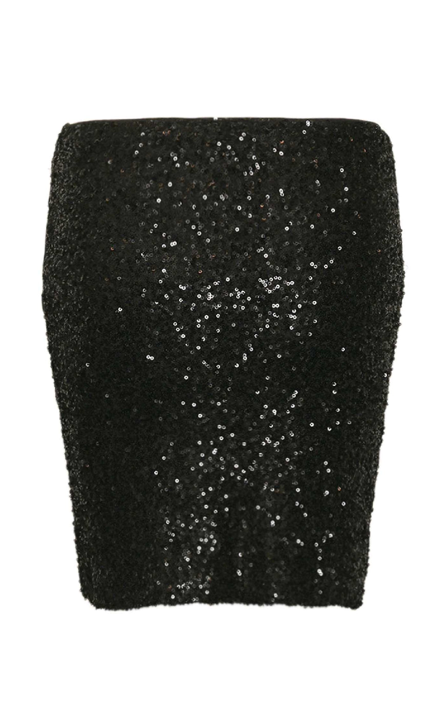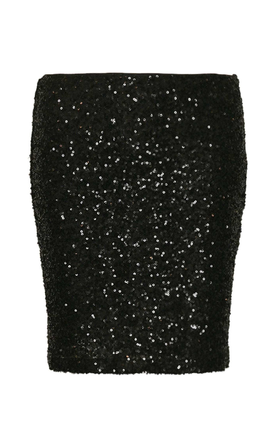 Kort nederdel fra Noella med fuld palietbesætning i sort, designet i en tætsiddende pasform for et glamourøst og festligt look.