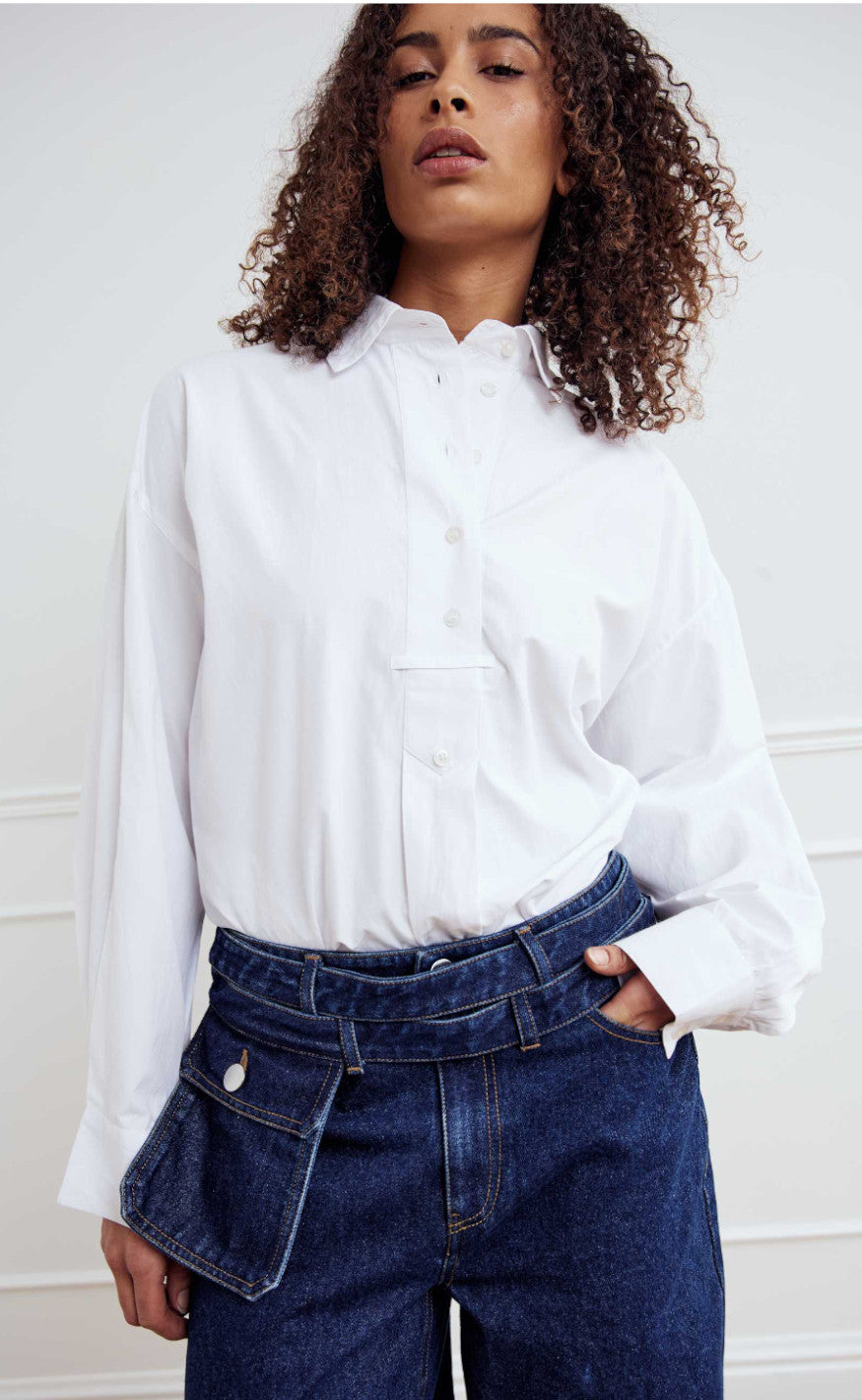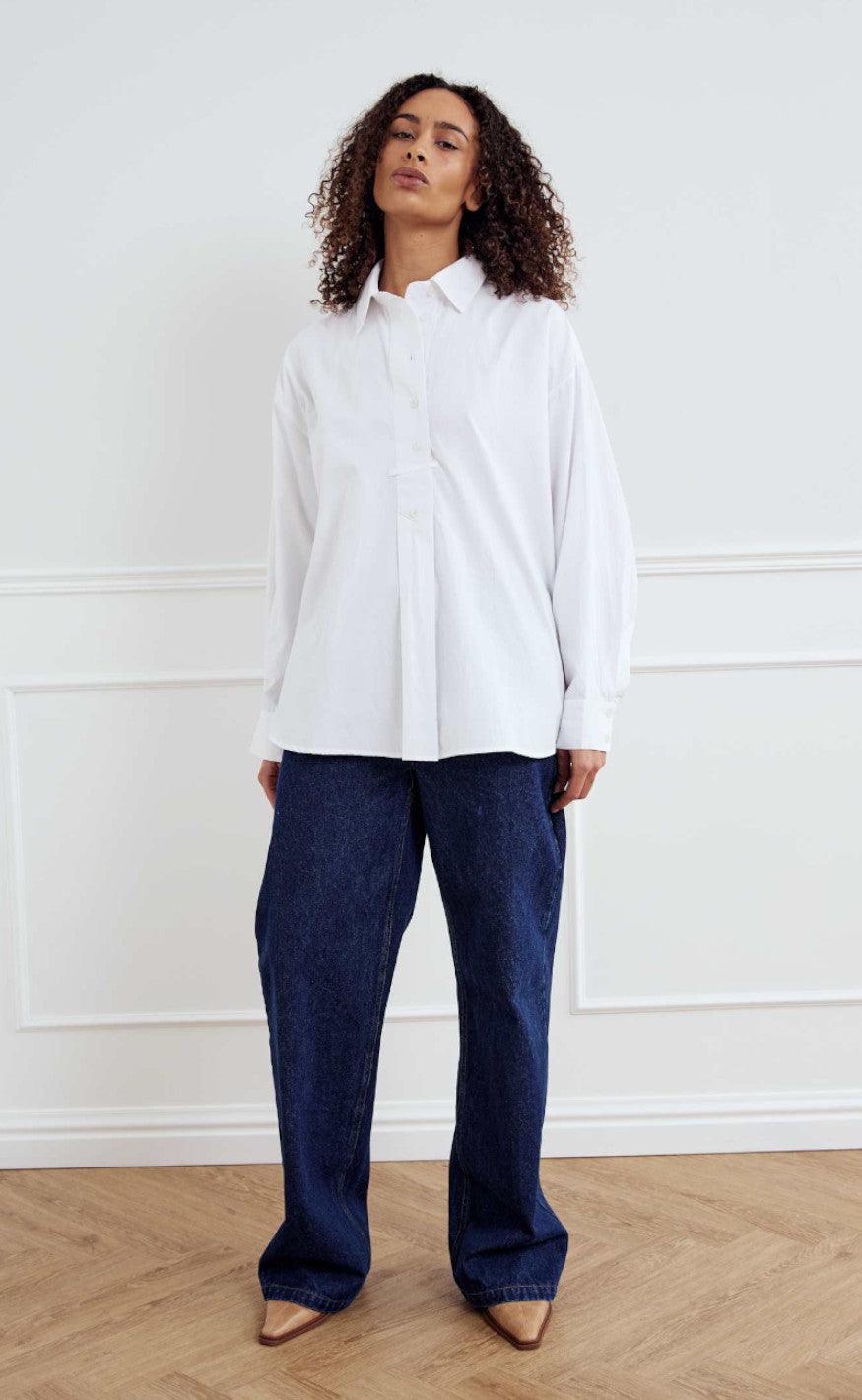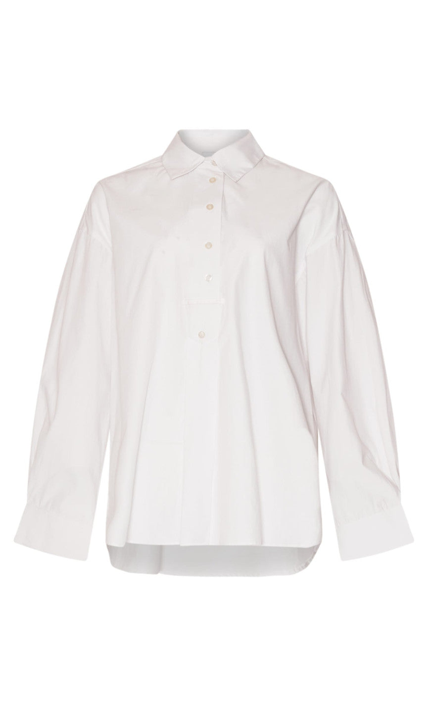 Skjorten har knapper halvt ned langs halsen samt en fin krave.