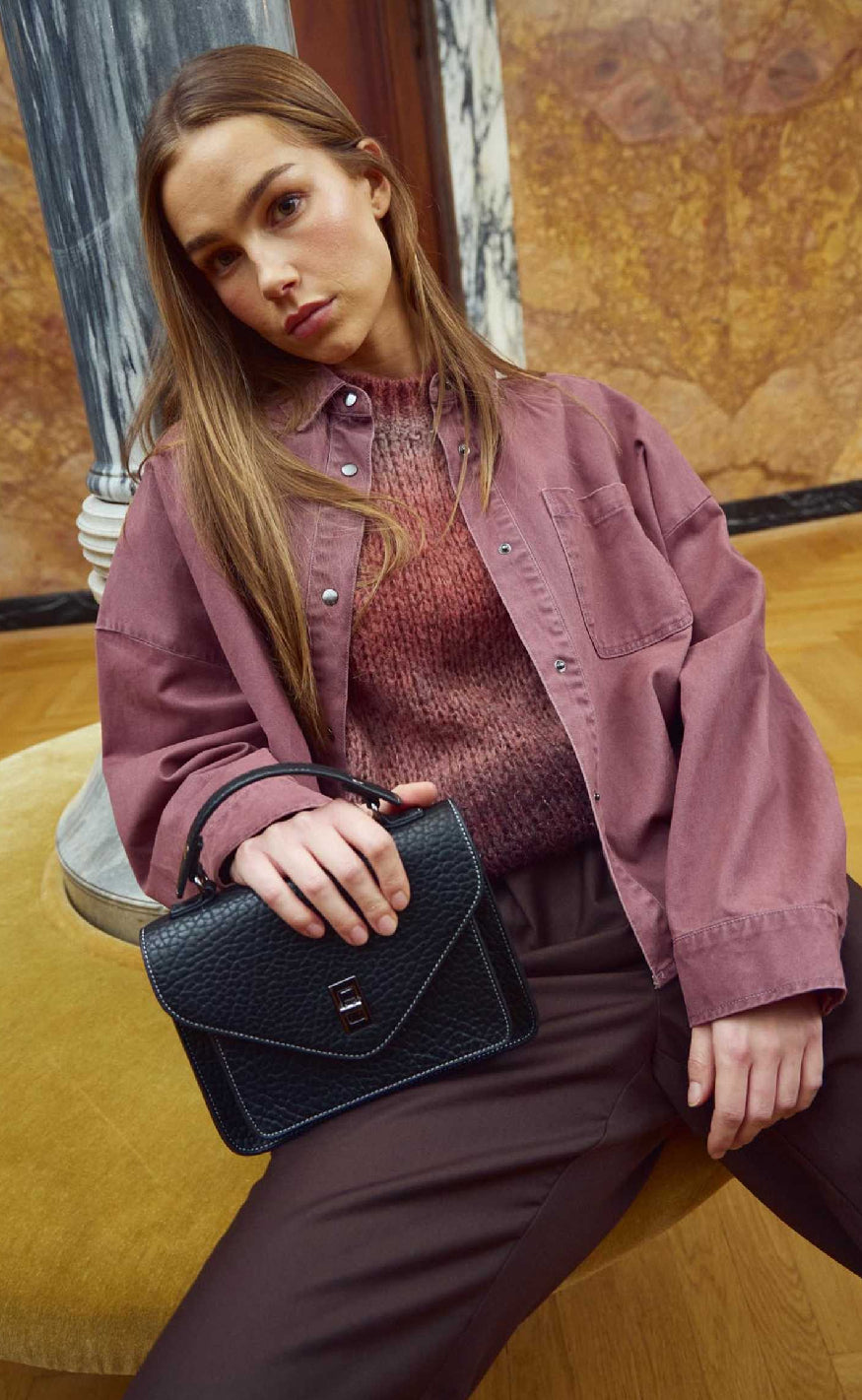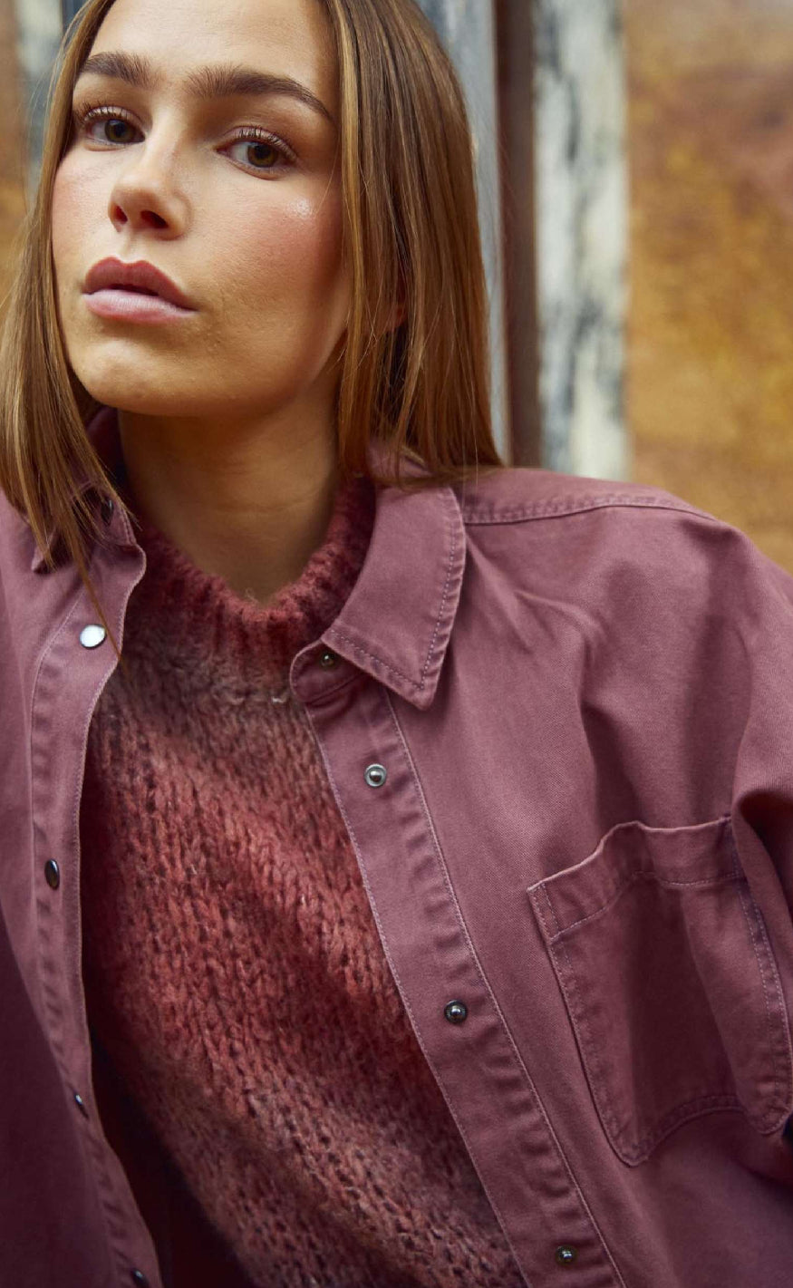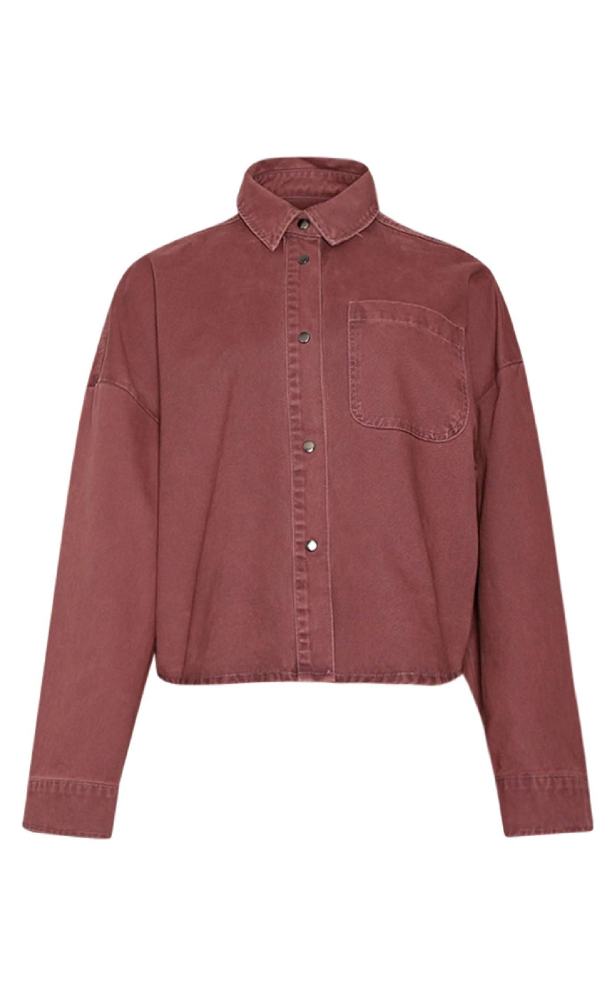 Skjorten et boxy fit samt kan jakken knappes fortil.