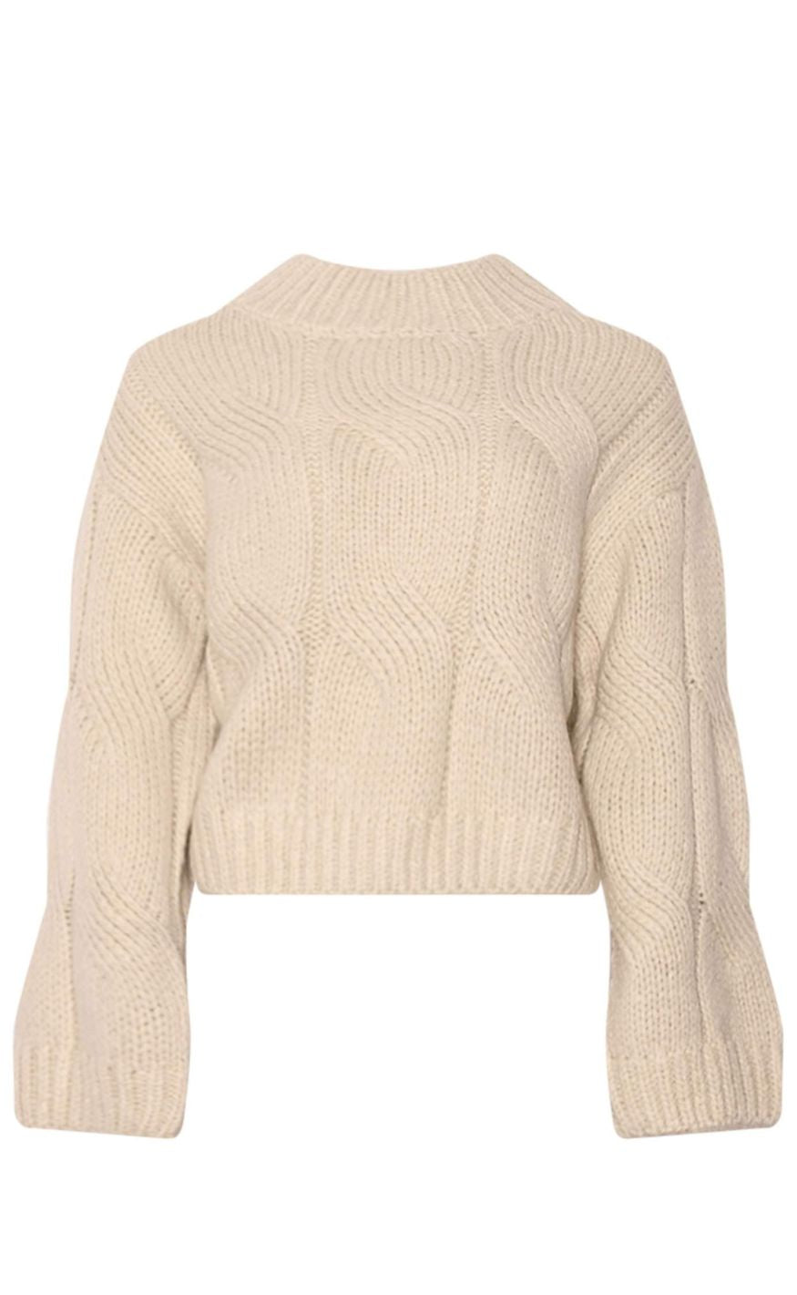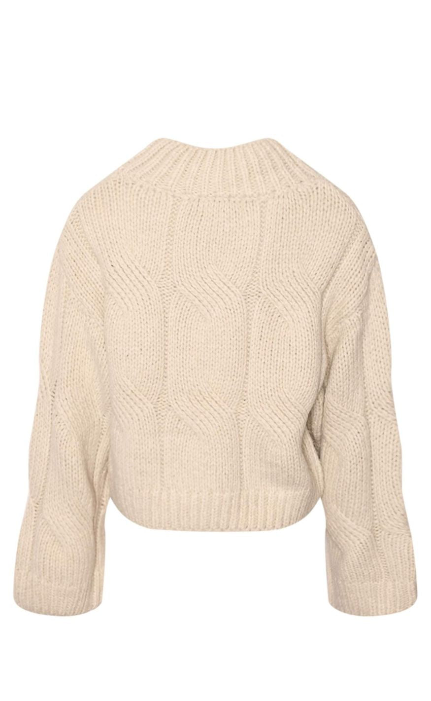Struktureret og hyggelig sweater. Strikken har markante, bølgede kabeldetaljer, og er perfekt til både fest og hverdag